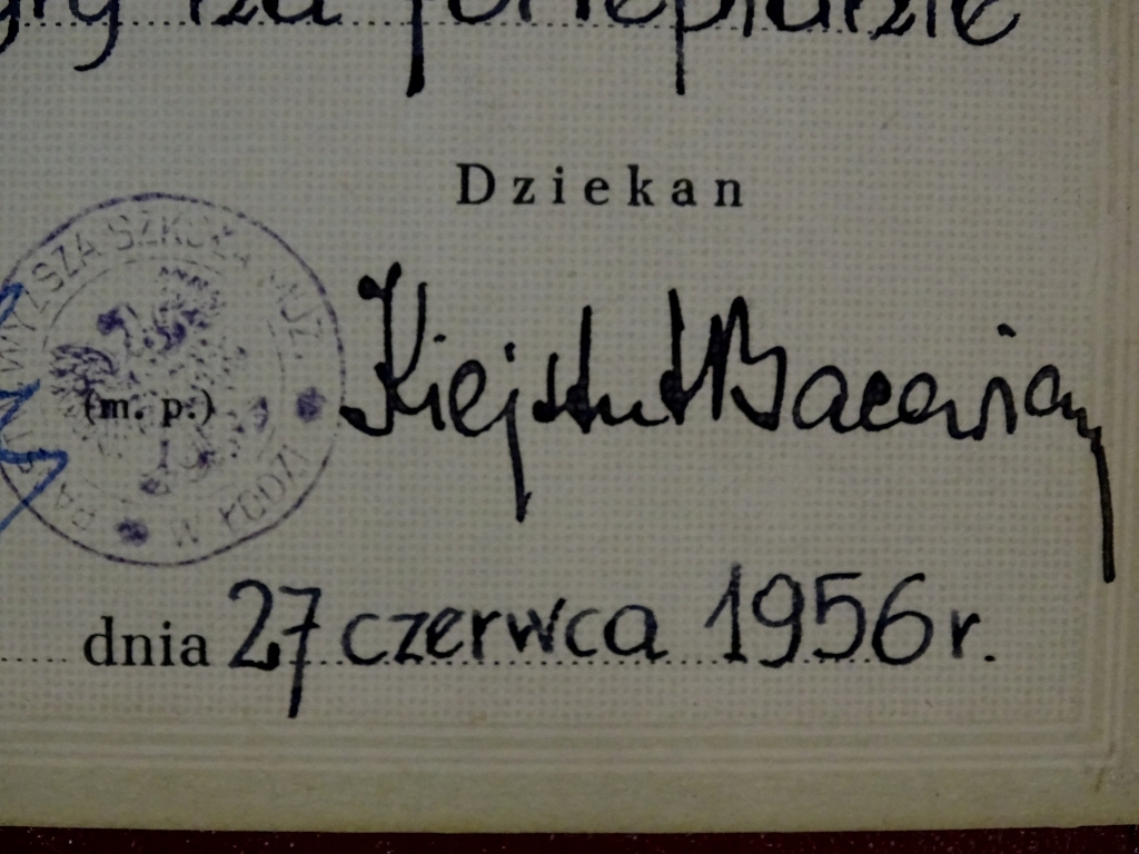 ДИПЛОМ СОДЕРЖИТ РУКОПИСНЫЙ АВТОГРАФ ДЕЙСТВУЮЩЕГО ДЕКАНА ШМОС в Лодзи , КЕЙСТАТ БАЦЕВИЧ,