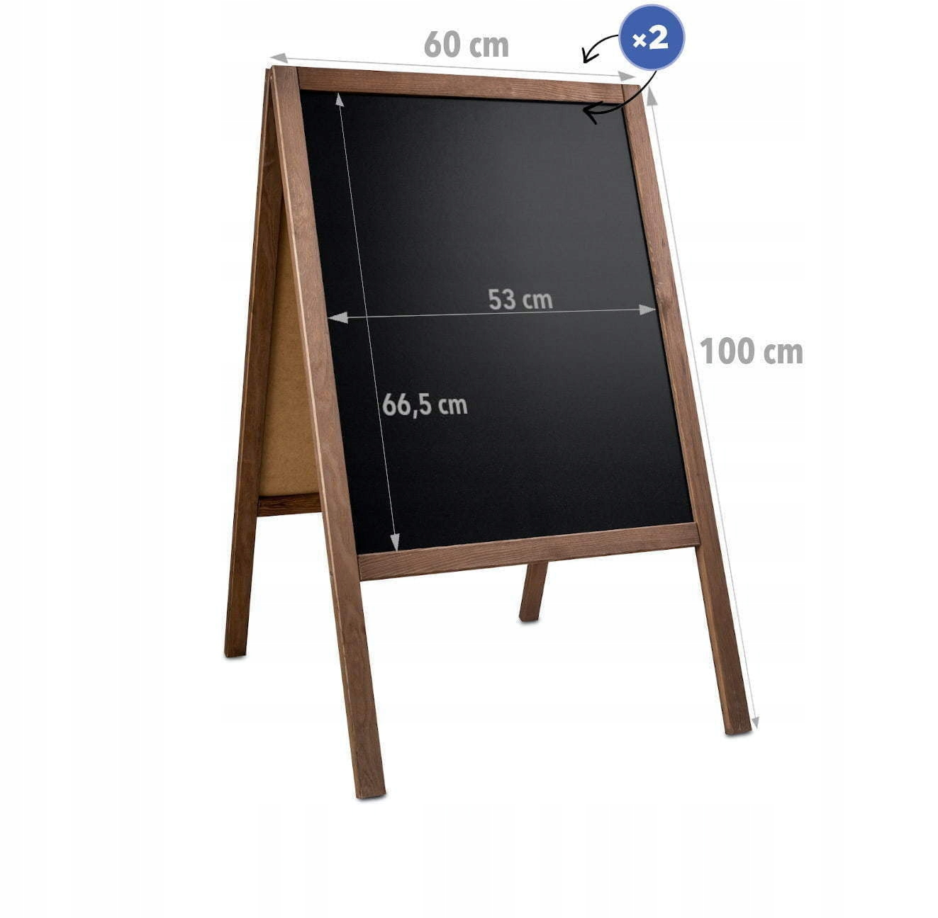 Доска деревянная двухсторонняя с дощечками для рисования мелом площадью 53 х 66,5 см. Общий размер доски 60х100 см.