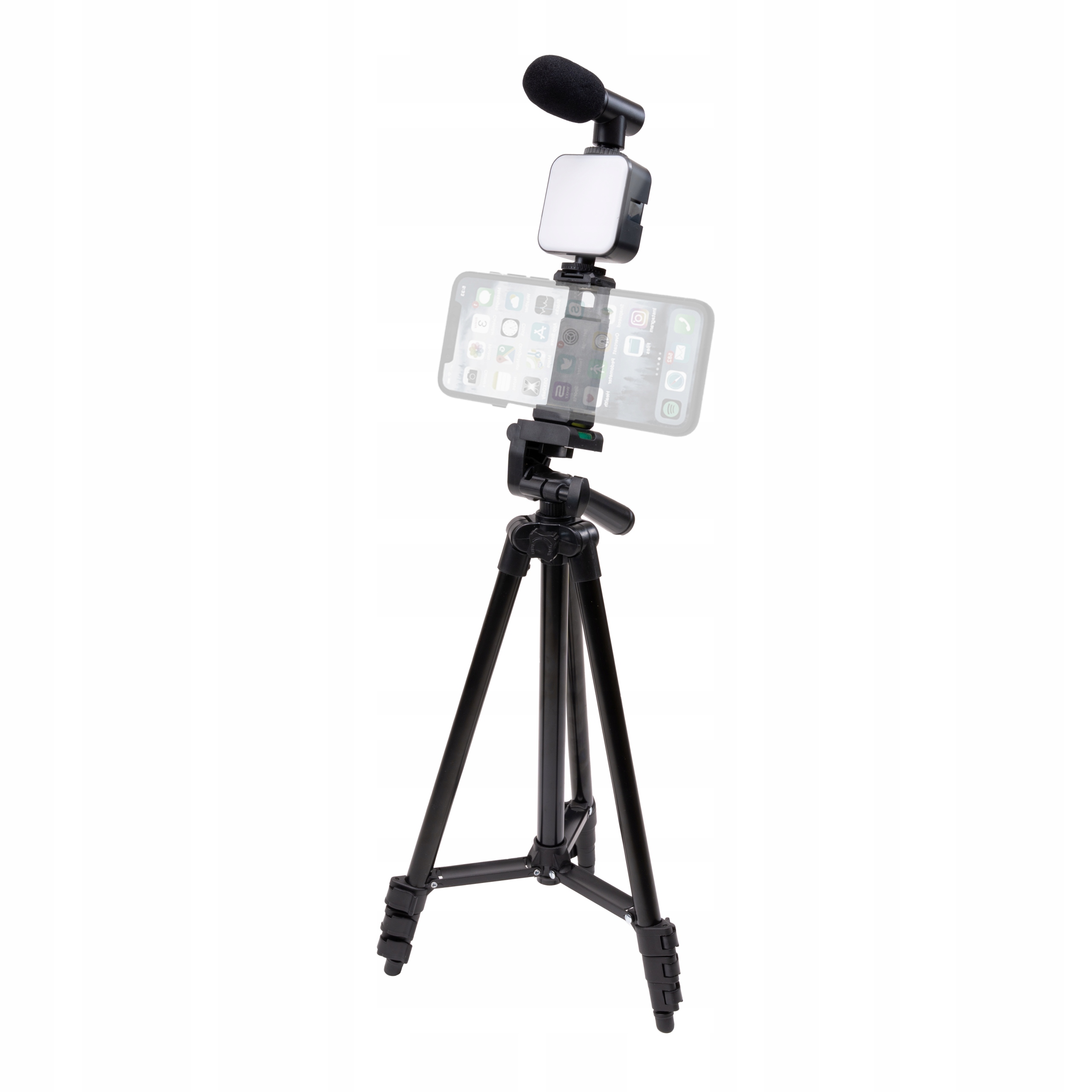 ✅ Оборудование: микрофон, светодиодная лампа, защитная крышка, штатив регулировки высоты, дистанционное управление, держатель смартфона, головка с уровнем уровня