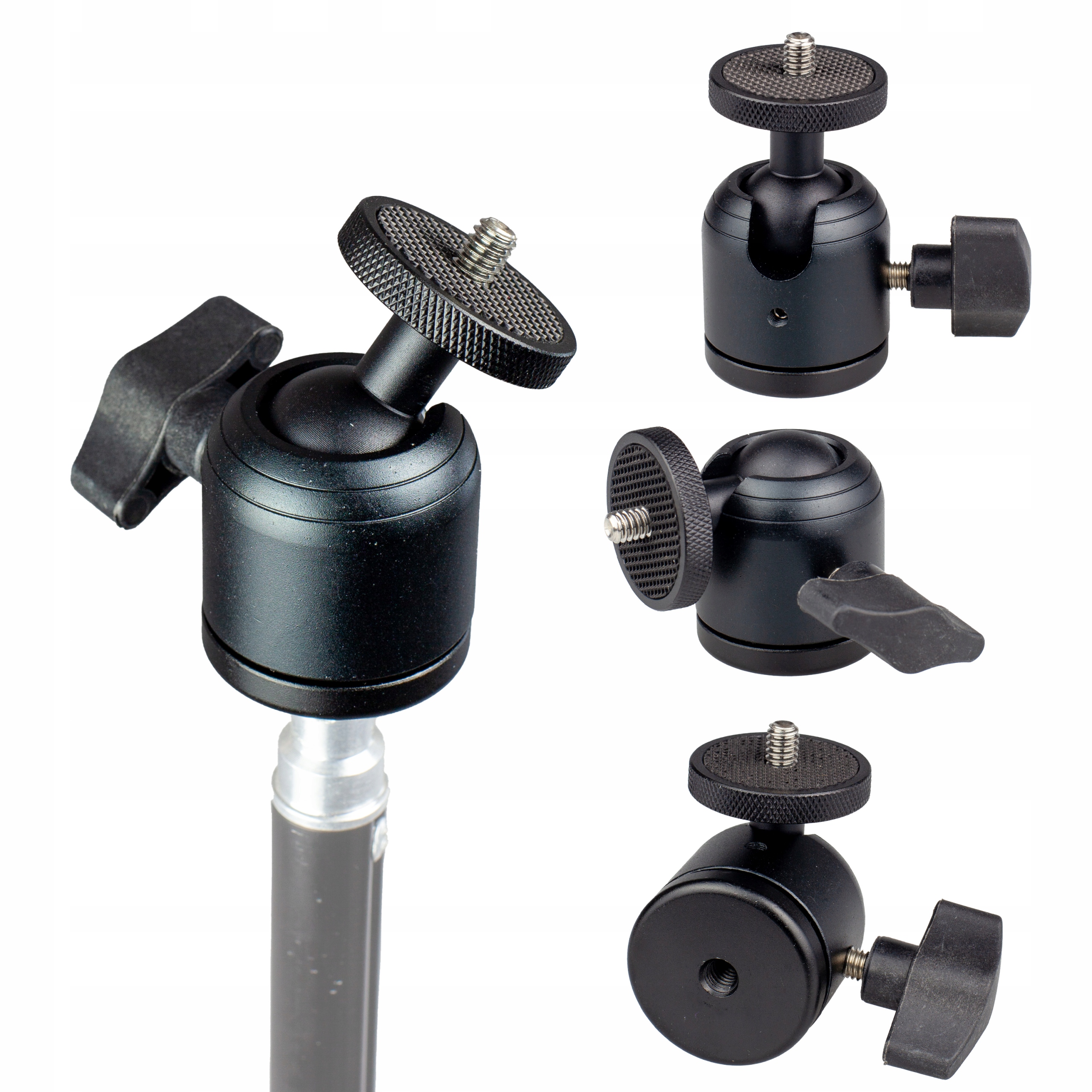 Шарольная головка является компактным и твердым раствором для безопасной сборки фотографических или пленочных аксессуаров на штативах, предлагая полную, гладкую регуляцию 360 ° для точного расположения светодиодных ламп, микрофонов, мониторов или световых камер; Благодаря универсальной системе сборки и прямым прикручиванию в оборудование (без быстрого соединения), она обеспечивает максимальную стабильность, устраняя Slack, которая работает даже при повседневном использовании.