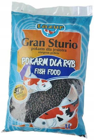 GRAN STURIO 1л Полноценный, чрезвычайно ценный корм для осетровых и других придонных прудовых рыб.