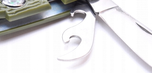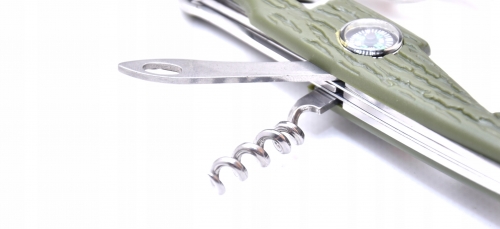 - нож, открывалка для бутылок, вилка, ложка и штопор объединены в один удобный карманный нож, который всегда можно носить с собой.