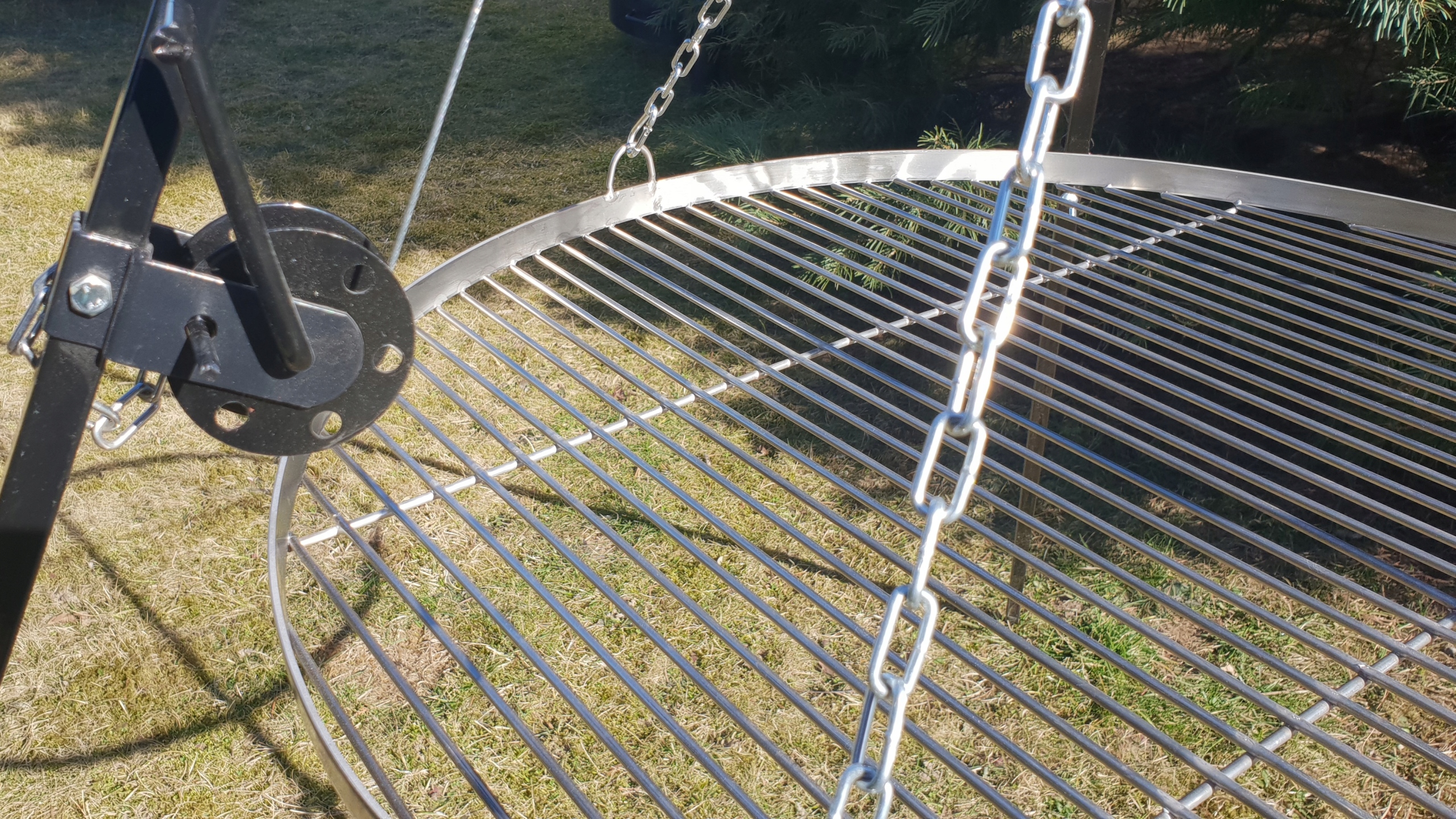Высота штатива около 185 см имеет ножки, которые складываются на две части, что значительно упрощает транспортировку. А раскладывание и складывание штатива занимает всего минуту и очень просто благодаря используемым барашковым винтам. Благодаря специальной катушке регулировать решетку очень просто и удобно, и поэтому мы имеем полный контроль над процессом приготовления на гриле. Кроме того, штатив имеет изящные украшения, благодаря чему он отлично смотрится, например, в Сад.