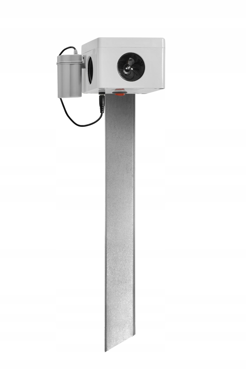 Устройство имеет анкер, с помощью которого его можно легко вбить в землю, но его можно установить и без анкера в любом месте, например, на водосточном желобе, на металлической двери или металлической черепице.