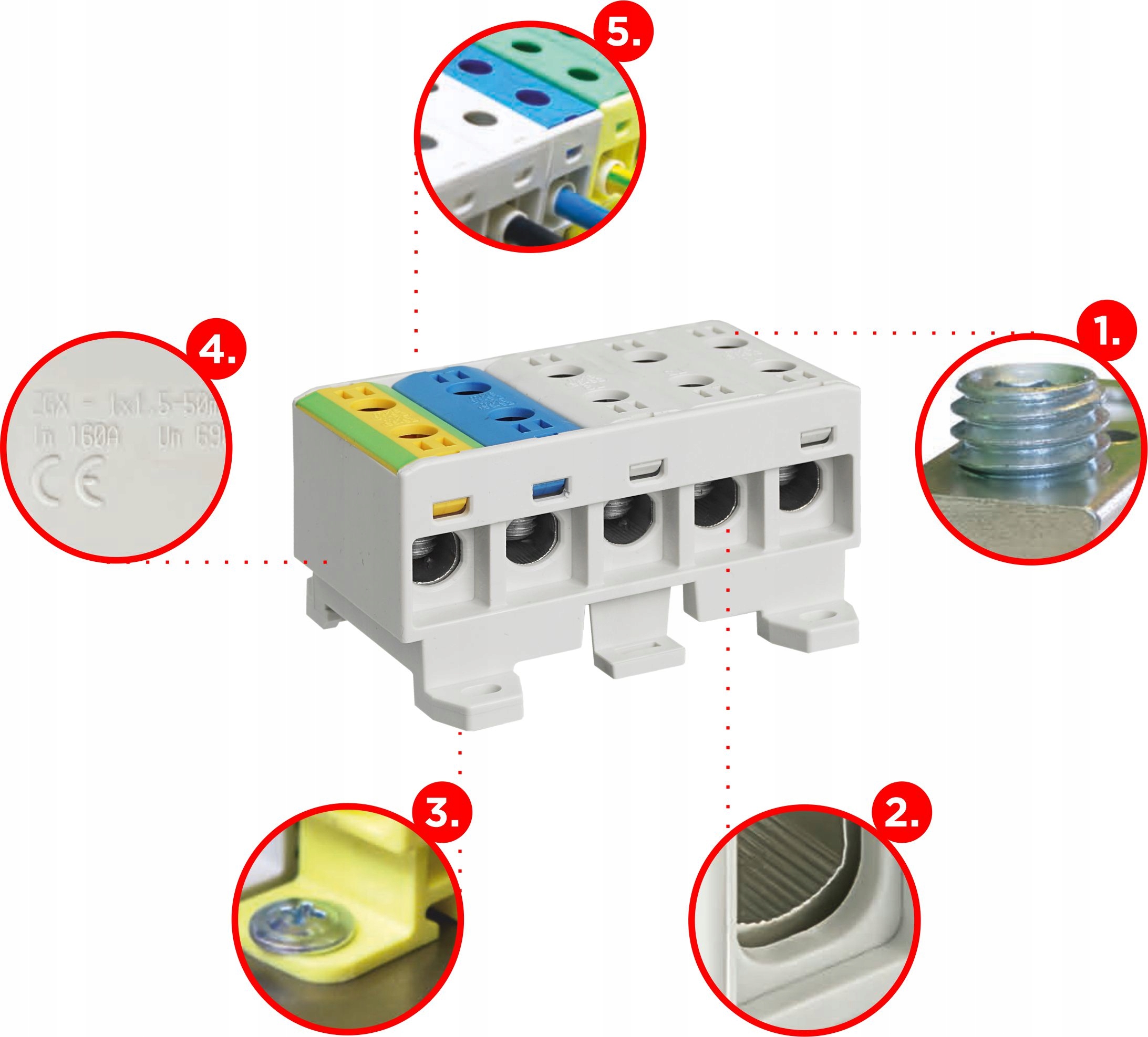 Универсальная цифровая полоса ZG, 3-й трек с шестью отверстиями, для кабелей с поперечным сечением от 2,5 до 35 мм2. На стандартном 35 -мм DIN RAIL. Медь и алюминий с точки зрения электрического и механического ✅ Технические данные: