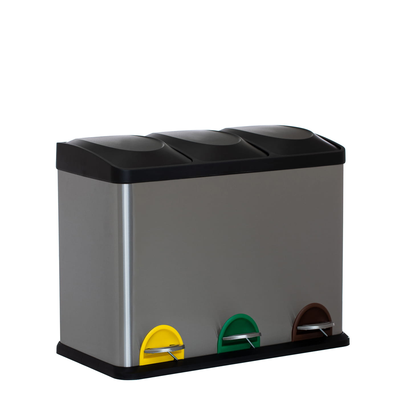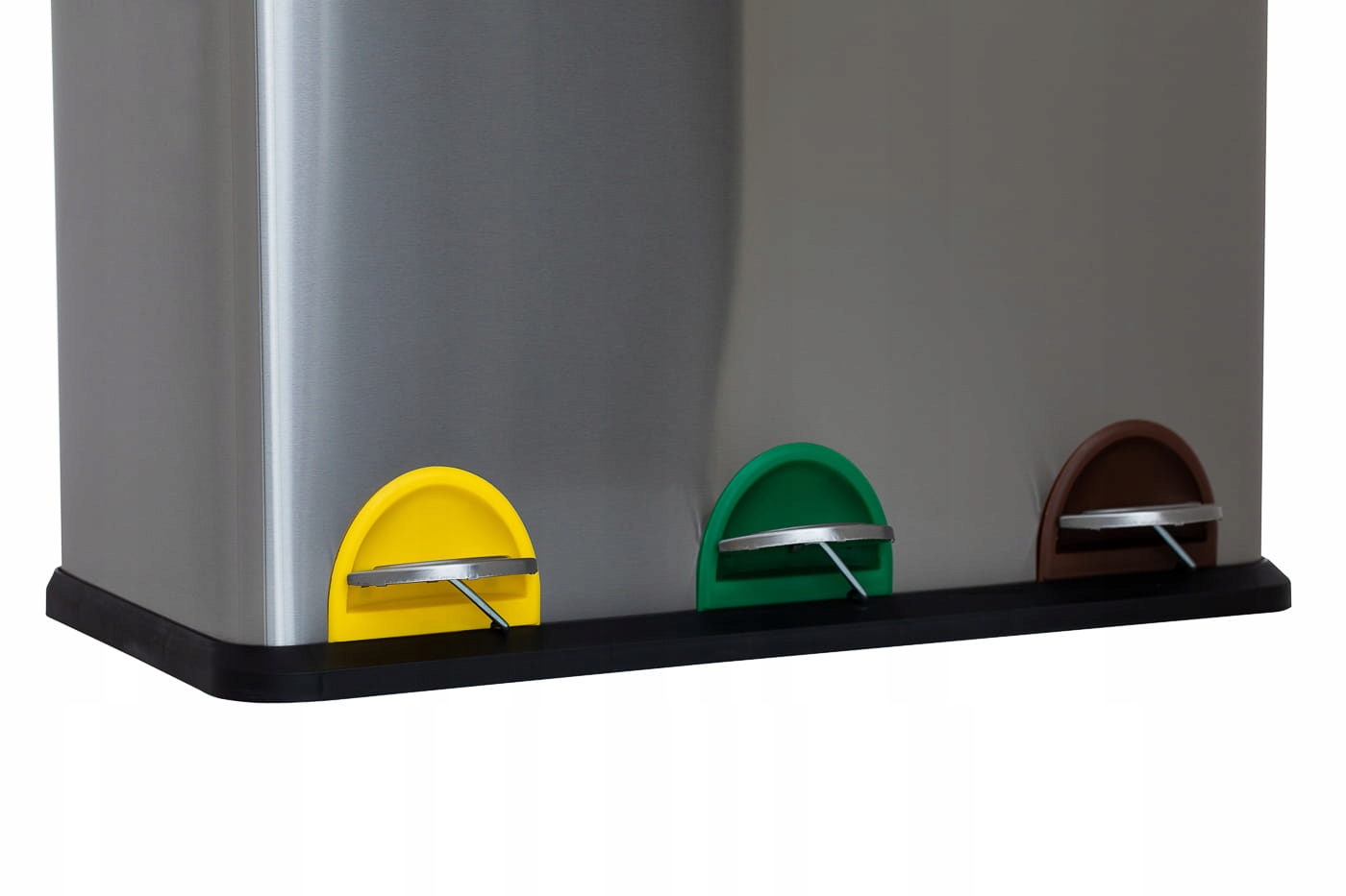 Контейнер имеет 3 педали с цветовой кодировкой, которые позволяют сортировать отходы по следующим категориям: