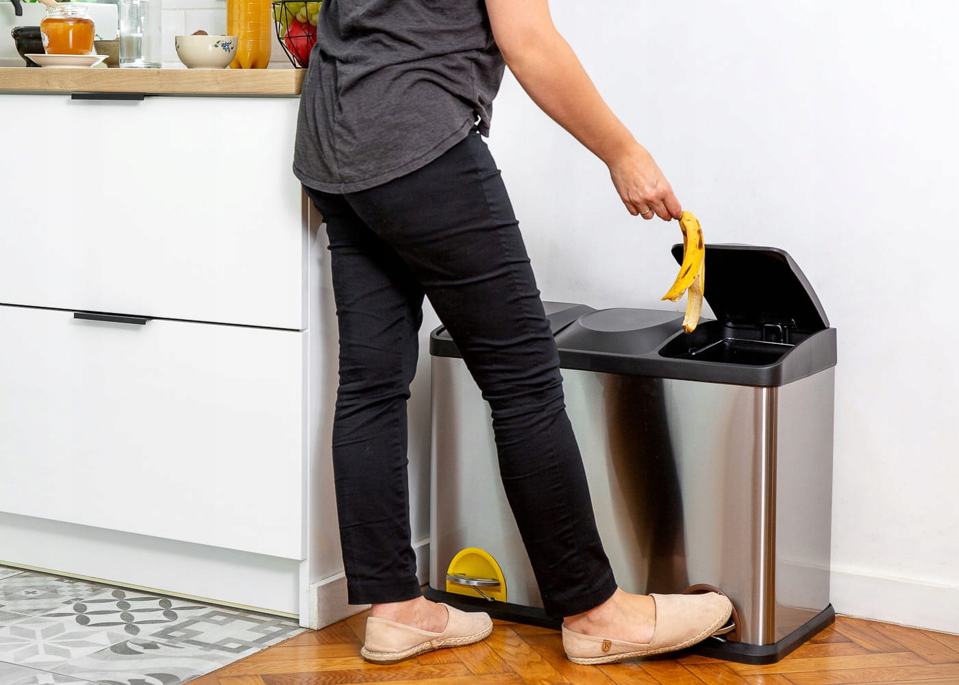 Красочная маркировка педалей позволит сортировать мусор по трем категориям.