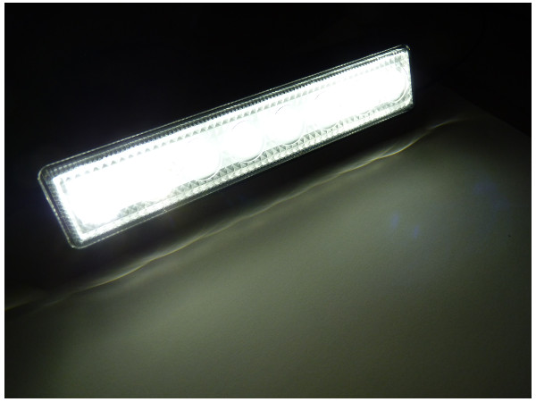 Интенсивно герметичный светодиодный светильник. Он имеет 8 мощных диодов. 4 средних светят прямо вперед, 2 крайних слева и справа рассеивают свет в стороны.