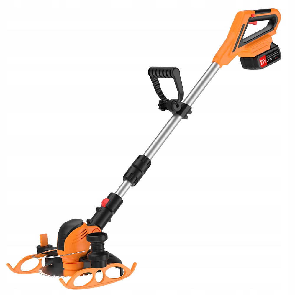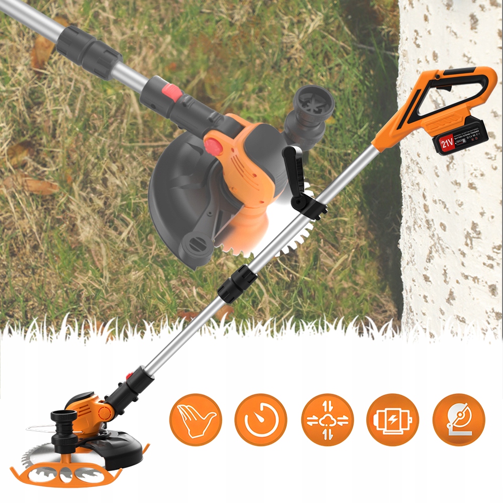 - ⚡Эта аккумуляторная газонокосилка сочетает в себе функции триммера и триммера, оснащенного направляющими для кромок на колесах.