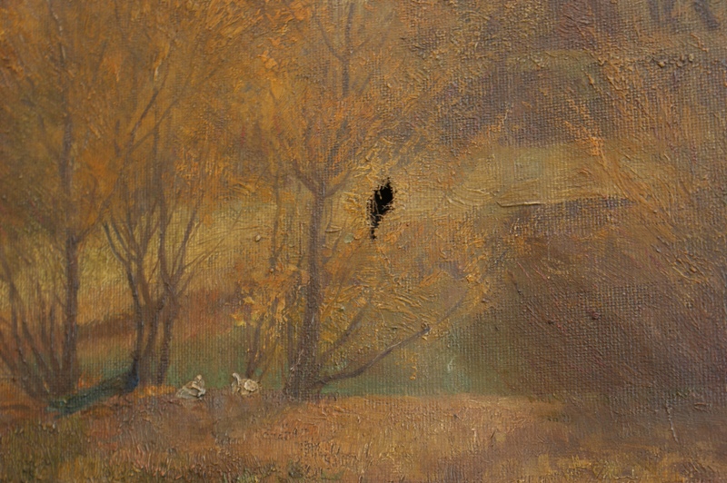 Приглашаю вас на мой следующий аукцион, предметом которого является довоенная картина маслом, написанная на холсте в оригинальной дубовой раме того периода. Полотно подписано в правом нижнем углу (нерасшифрованная подпись). Картина в оригинальном состоянии, на фотографиях видны повреждения холста.