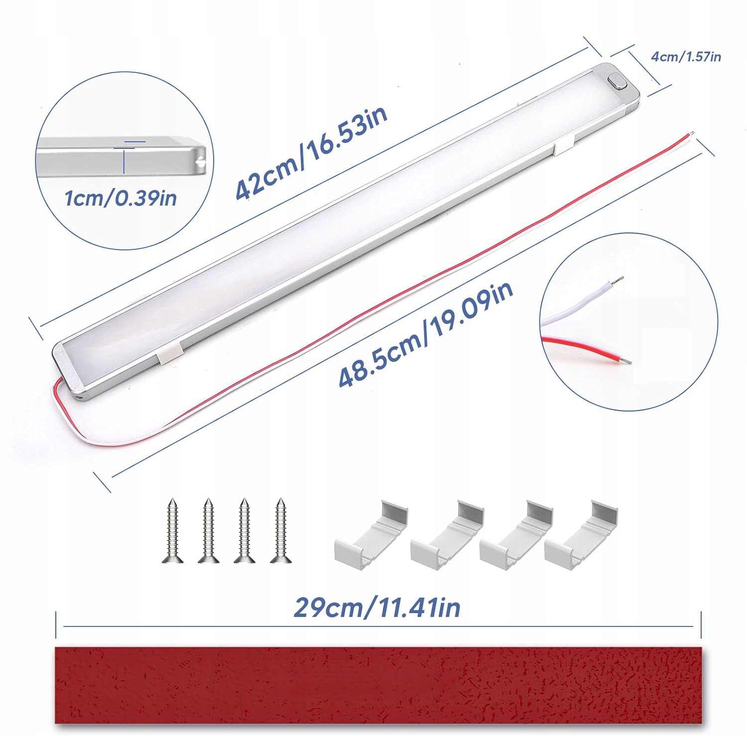 ✅ Более тонкий дизайн: Автомобильный светодиодный фонарь 12 В изготовлен из ультратонкой и износостойкой пластины из алюминиевого сплава толщиной 1 см и высокой проницаемое покрытие из ПВХ; Светодиодная лента 12В. Размер 42 х 4 х 1 см, что обеспечивает хорошую светопроницаемость и мягкий, не слишком яркий свет.