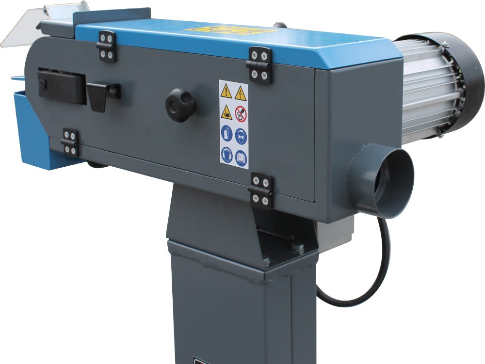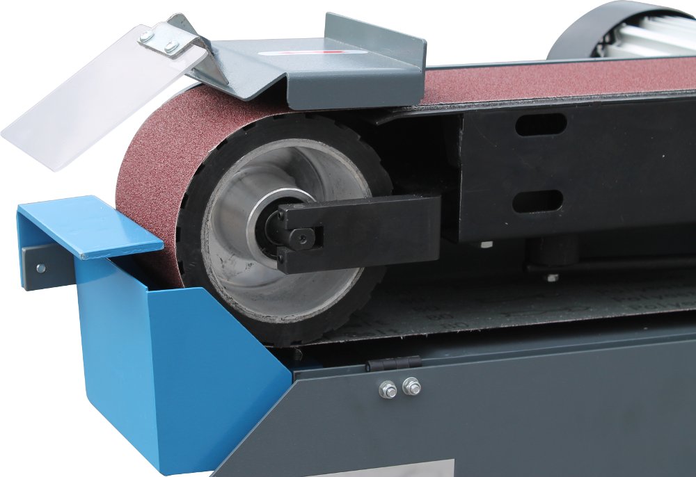 Машина оснащена абразивной лентой шириной 100 мм и длиной 1220 мм, замена которых осуществляется очень просто и быстро. Шлифмашина имеет 2 скорости ленты: 19 и 38 м/с.