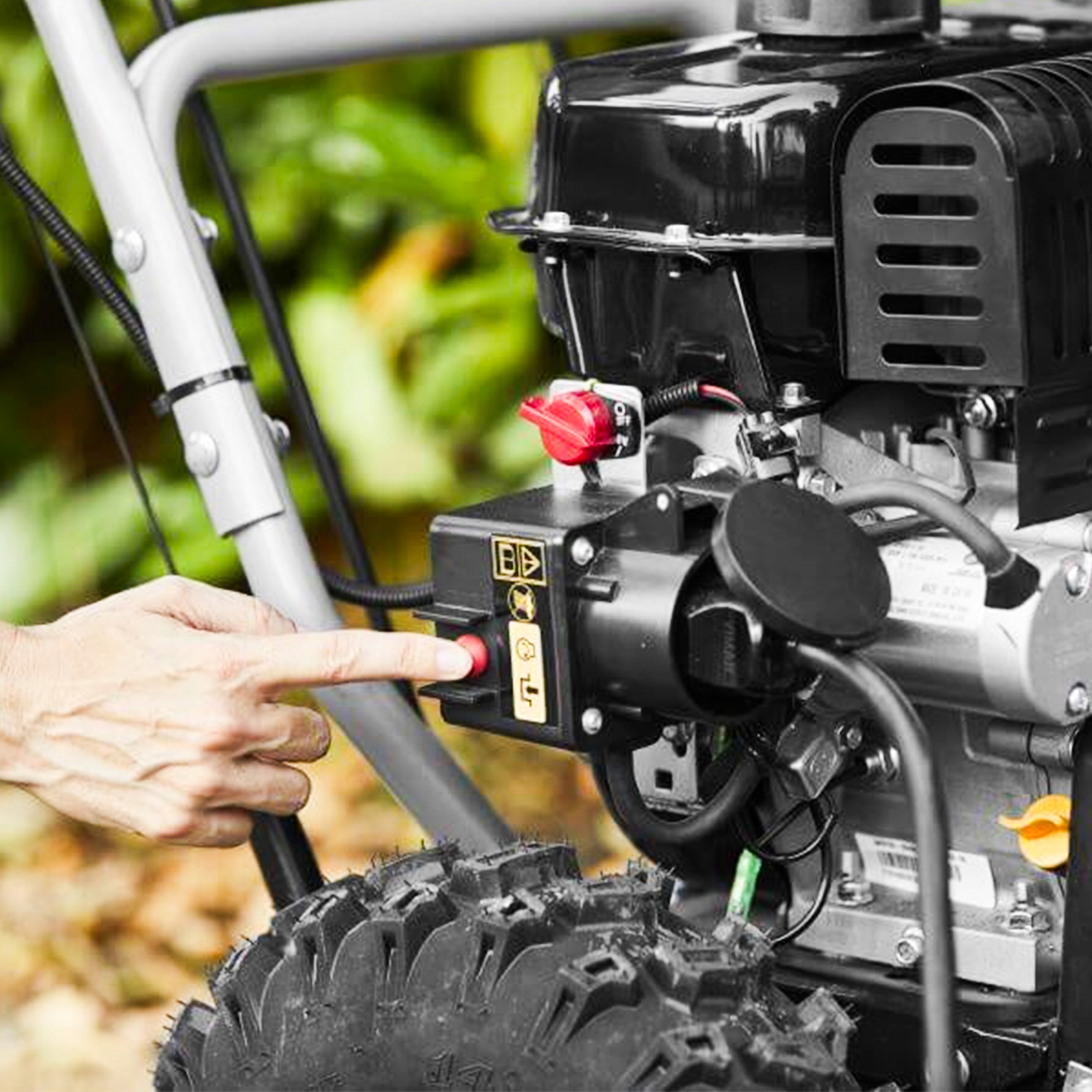 ✅ Подметальная машина оснащена шинами Snow Hog 14 x 4,60. -6" со ступенями, которые справляются с самыми неровными поверхностями.
