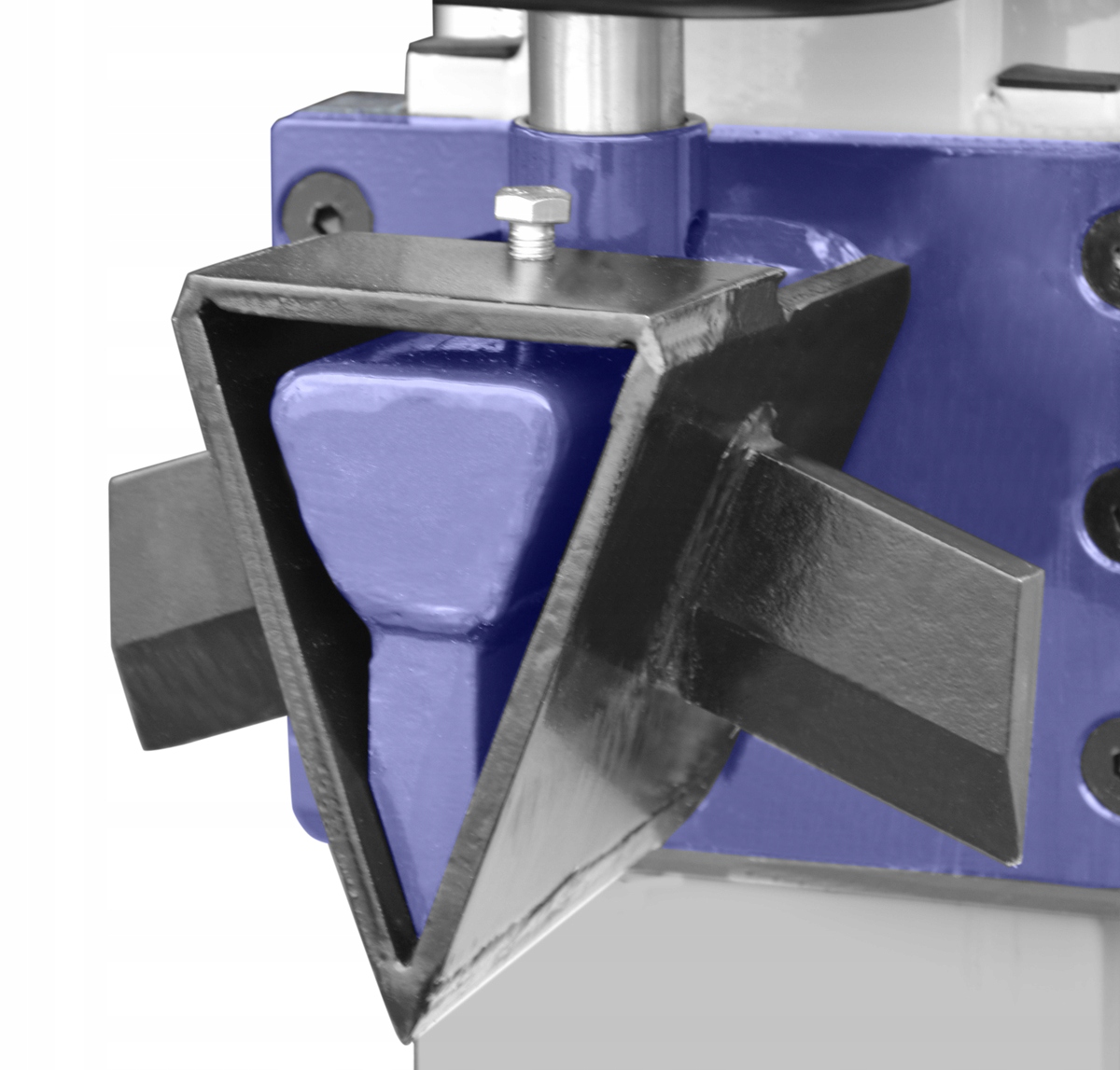 Складная боковая крышка служит также системой для подъема тяжелых бревен и вертикального размещения их непосредственно под клином (для подъема снимите правую крышку).