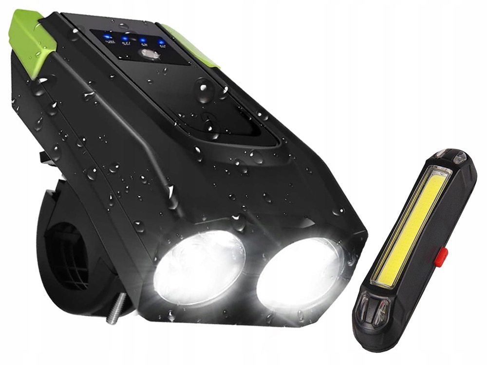 ПОТУЖНА ВЕЛОСИПЕДНА ЛАМПА ПЕРЕДНЯ ЗАДНЯ СВІТЛОДІОДНА ГУЧНА АКУМУЛЯТОРНА БАТАРЕЯ 2в1