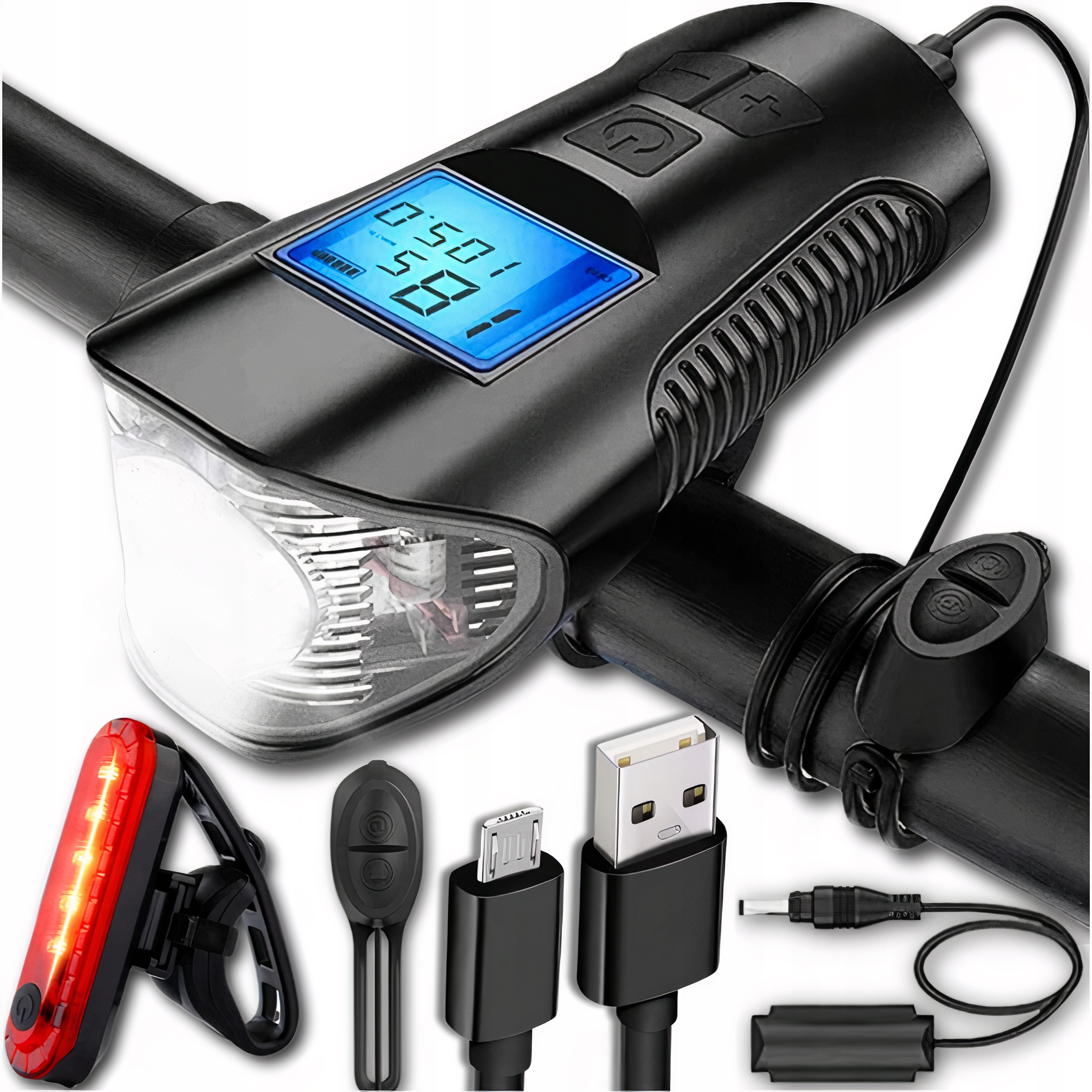 МОЩНЫЙ ВЕЛОСИПЕДНЫЙ ФОНАР ПЕРЕДНИЙ ЗАДНИЙ СВЕТОДИОДНЫЙ СЧЕТЧИК ГРОМКОГО ЗВОНКА
