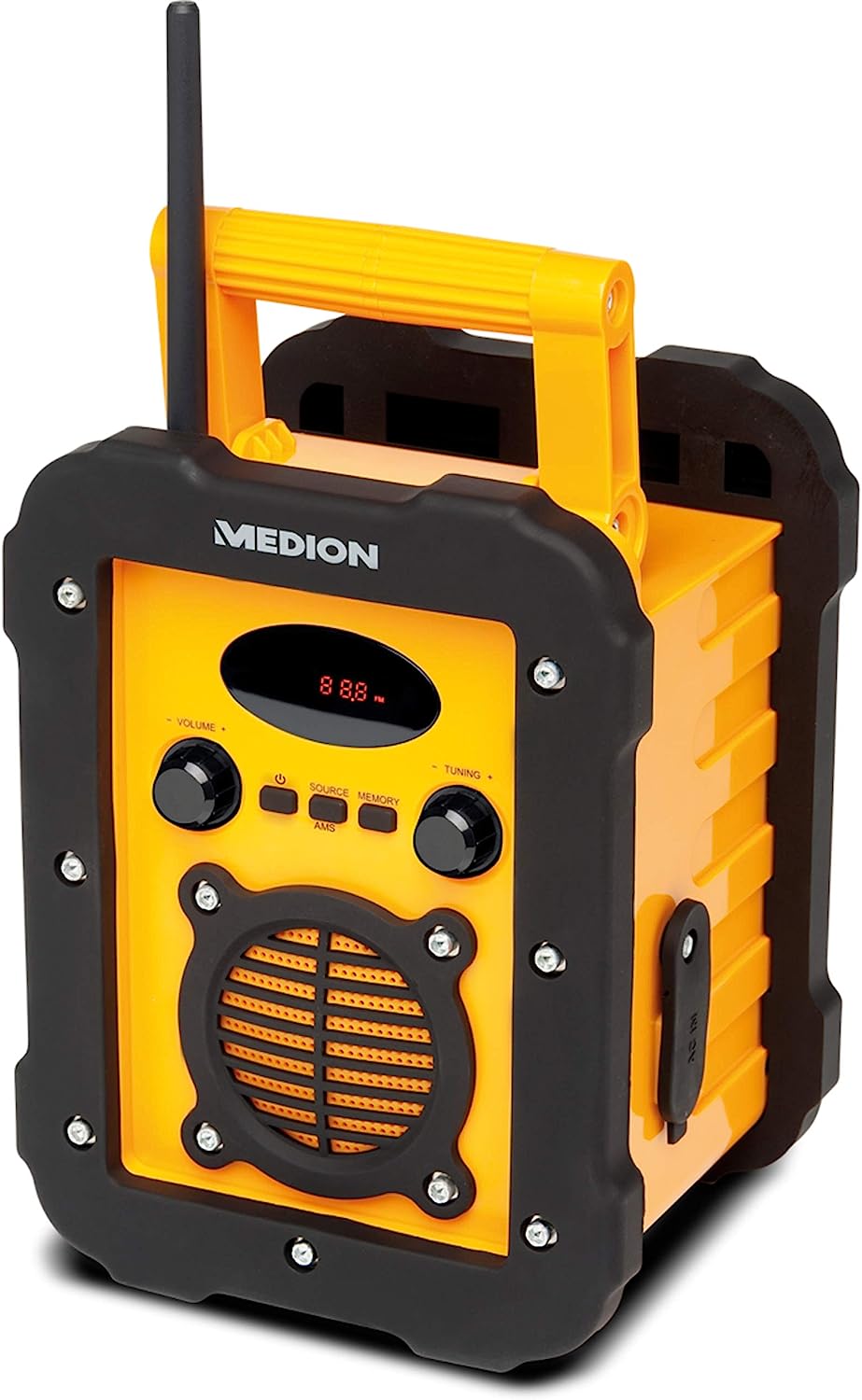 Теперь вы можете наслаждаться хорошей музыкой во время работы в саду, теплице, кемпинге или даже на стройке благодаря прочной конструкции и водонепроницаемым (брызгозащищенным) свойствам. Строительная радиостанция MEDION передает звук вам и вашим коллегам через (FM) радио или через Bluetooth прямо с вашего смартфона.