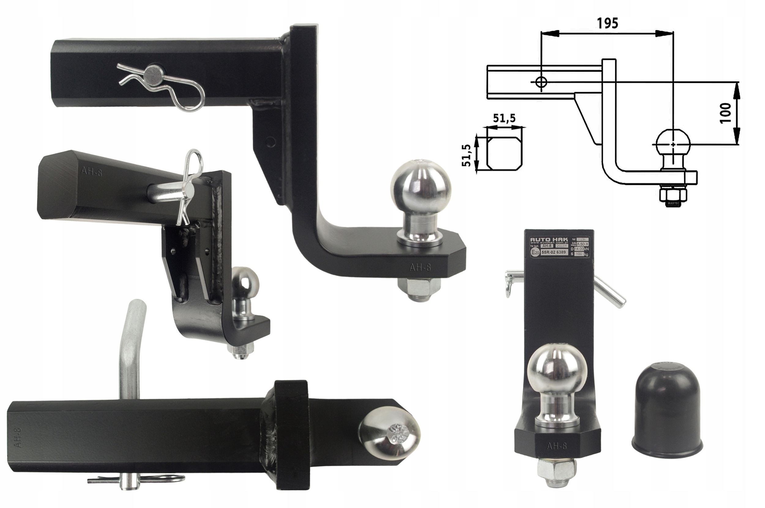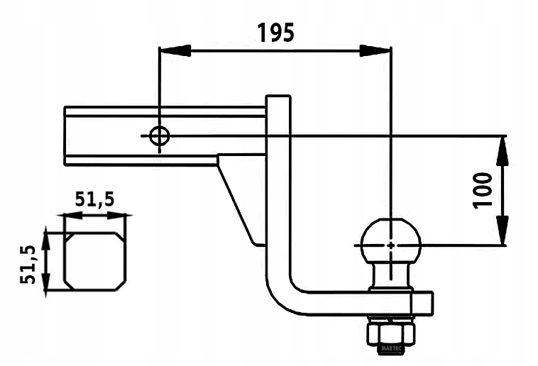 Шариковое крепление/адаптер для американских автомобилей – преимущественно с более высокой подвеской. Омологирован. Подходит для квадратных монтажных розеток размером 51 x 51 мм. В комплект входит английская булавка со шплинтом. Сам шар, в случае износа, можно приобрести как отдельный элемент (шарик с резьбой М22). Его диаметр соответствует европейским стандартам (50 мм). Оно занижено на 100 мм относительно оси монтажного гнезда.