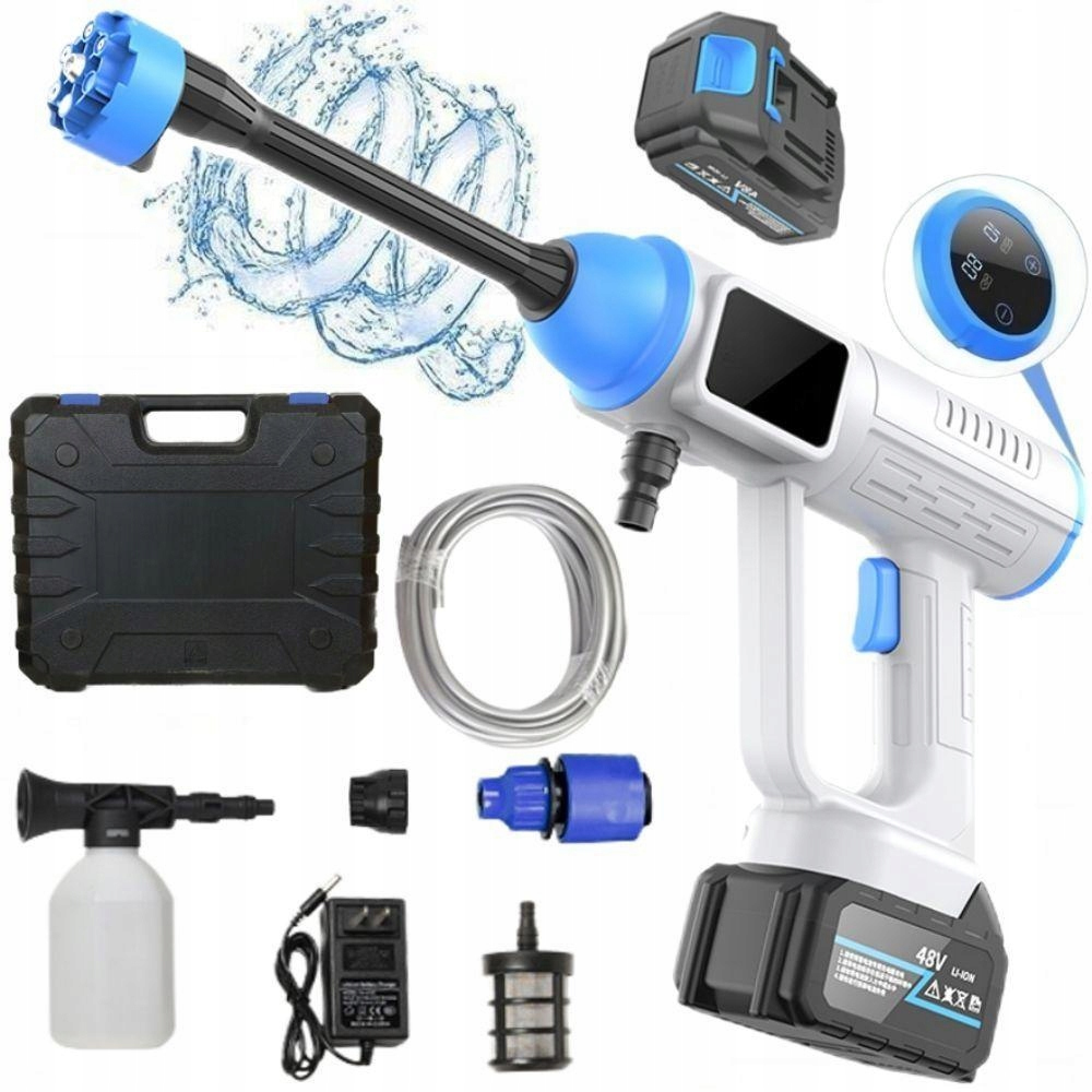 ⏩⏩В комплект входят:водяной пистолет + литиевый аккумулятор + шланг подачи воды 10 м + пенный контейнер + быстроразъемный разъем для залива воды + самовсасывающий фильтр + многофункциональная насадка + зарядное устройство + сумка Аккумуляторные мойки Преимущество моек высокого давления с батарейным питанием заключается в портативности и простоте использования, без необходимости использования внешнего источника питания или запутанных кабелей.