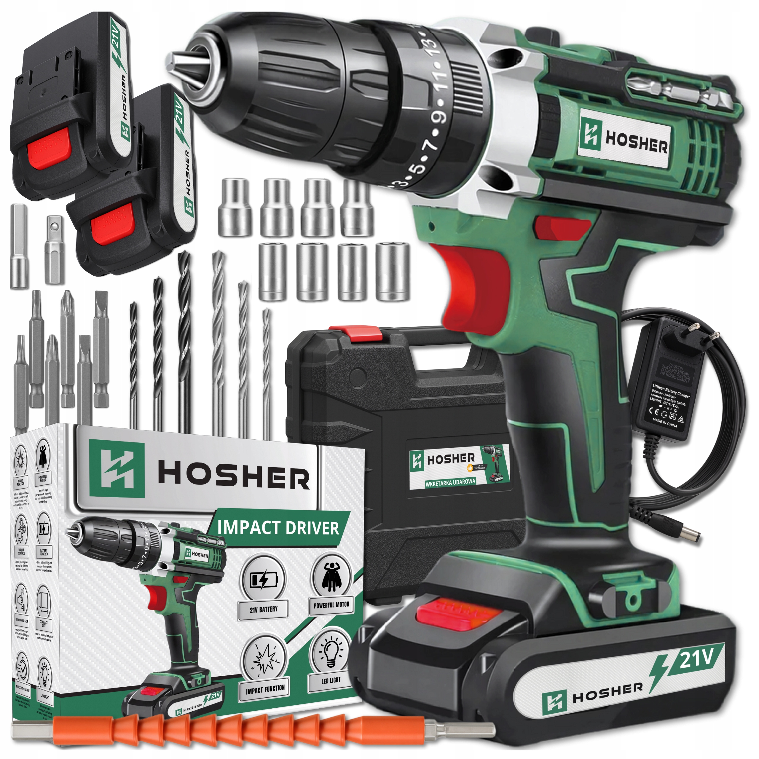 УДЕР HOSHER 21 В УДАРНАЯ/ПРИВОДНАЯ, 2x АККУМУЛЯТОРНАЯ БАТАРЕЯ 2,0 Ач, КОМПЛЕКТ + КОРПУС