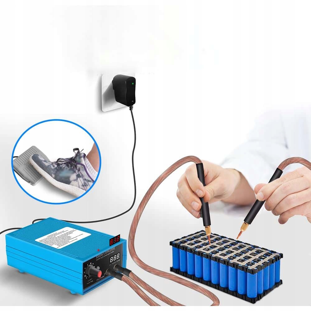 ПОТУЖНИЙ АПАРАТ ТОЧКОВОГО ЗВАРЮВАННЯ З ПЕДАЛЮ 5000 Вт НА 18650 АКУМУЛЯТОРІВ