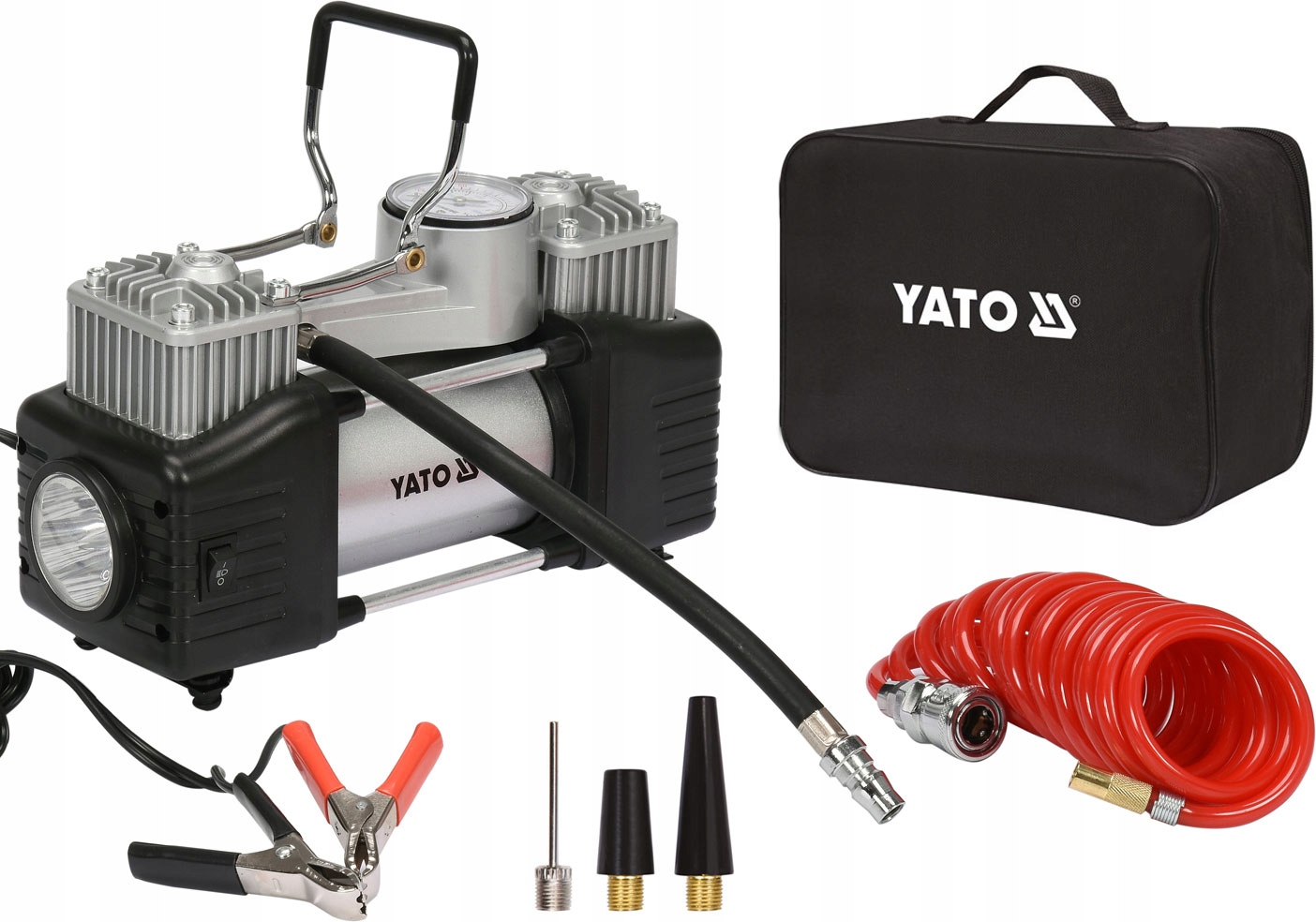 Мощный компрессор YATO с точным манометром. Напряжение питания 12-13,8В. Предназначен для накачивания колес и камер, оснащенных клапаном, автомобилей, мотоциклов и велосипедов, а также - с использованием сменных насадок - матрасов, понтонов и шариков. Способность получать энергию непосредственно от автомобильного аккумулятора позволяет накачивать насос с большей мощностью, чем традиционные компрессоры, подключаемые к прикуривателю в автомобиле.