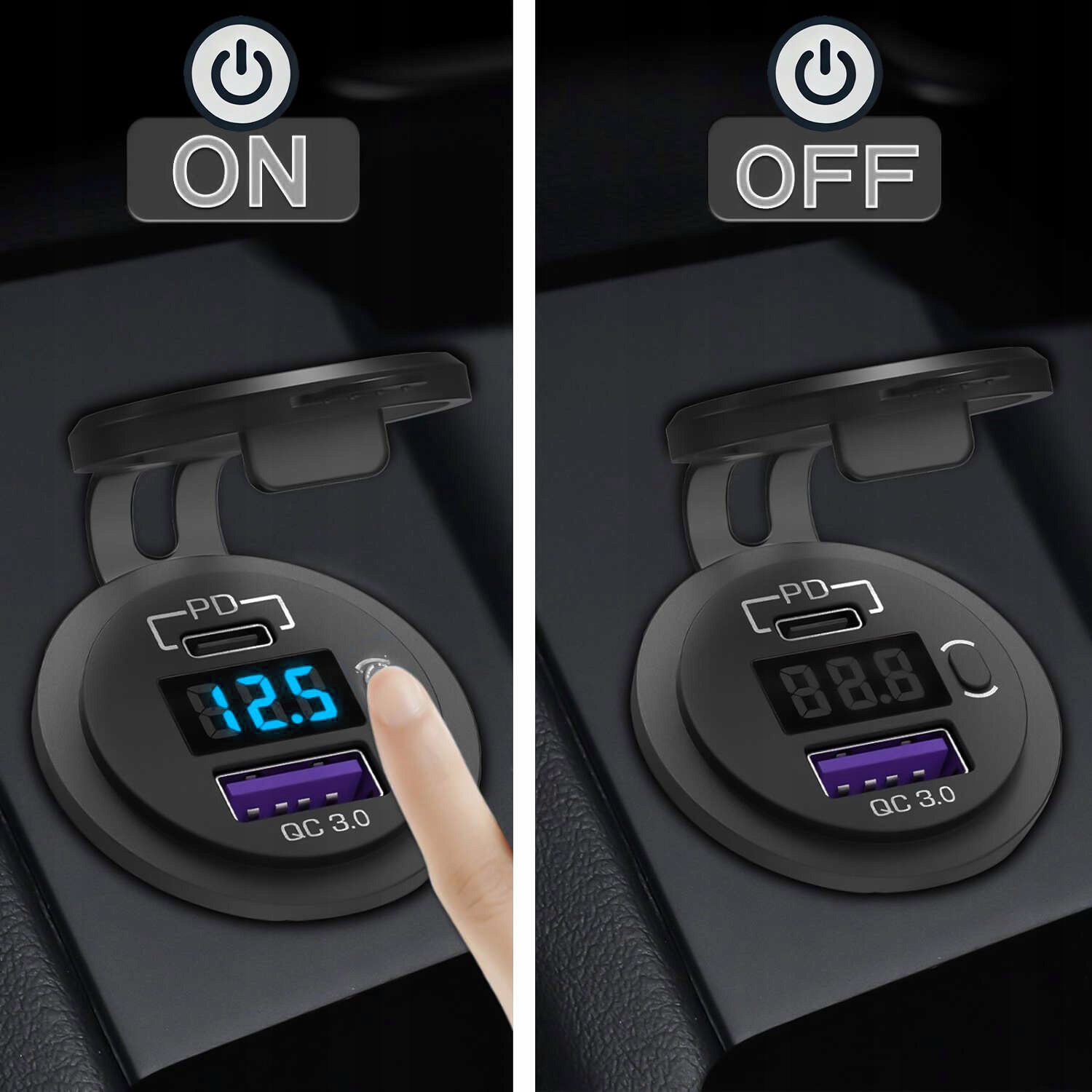 ▶️ Автомобильное зарядное устройство USB QC 3.0 + адаптер USB-C type-C PD гнездо автомобильного прикуривателя Светодиодный вольтметр 48 Вт стекло для телефона черный