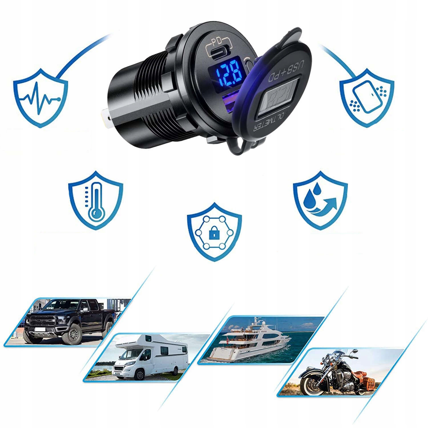 Потужний автомобільний мотоциклетний зарядний пристрій для вашого телефону USB QC 3.0 + USB-C C PD