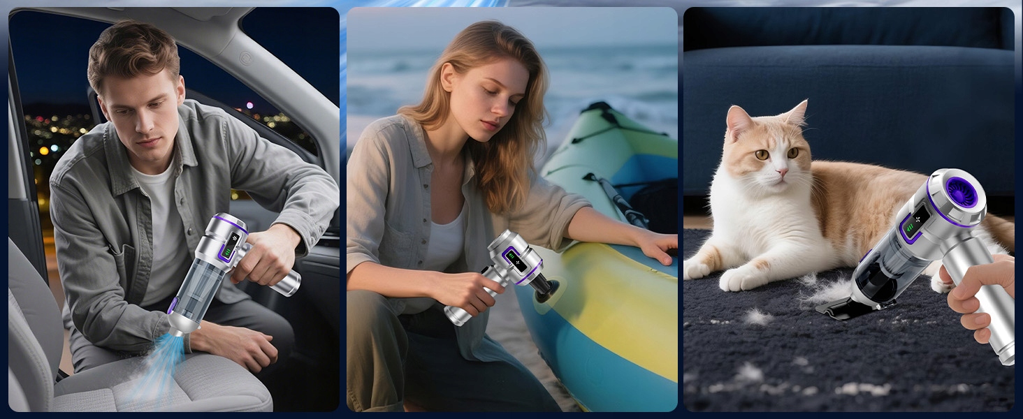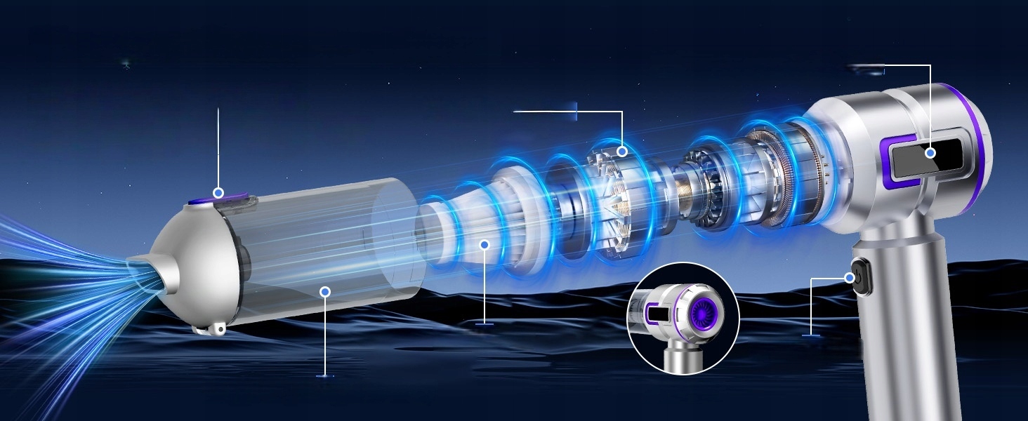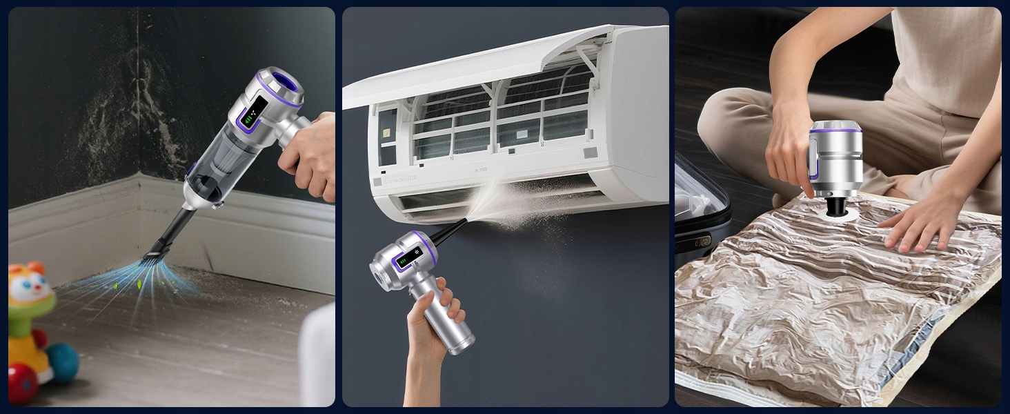 Главным преимуществом этого ручного пылесоса является сочетаниемощной силы всасывания 16 000 Па с уникальной многофункциональностью 4-в-1 (всасывание, выдув, откачка, вакуумная упаковка). Благодаря интуитивно понятному ЖК-дисплею, долговечному аккумулятору емкостью 6000 мАч и богатому набору аксессуаров устройство представляет собой комплексное решение, сочетающее в себе эффективную очистку, универсальность использования (дома, в машине, в путешествии, на природе) и отличную портативность.