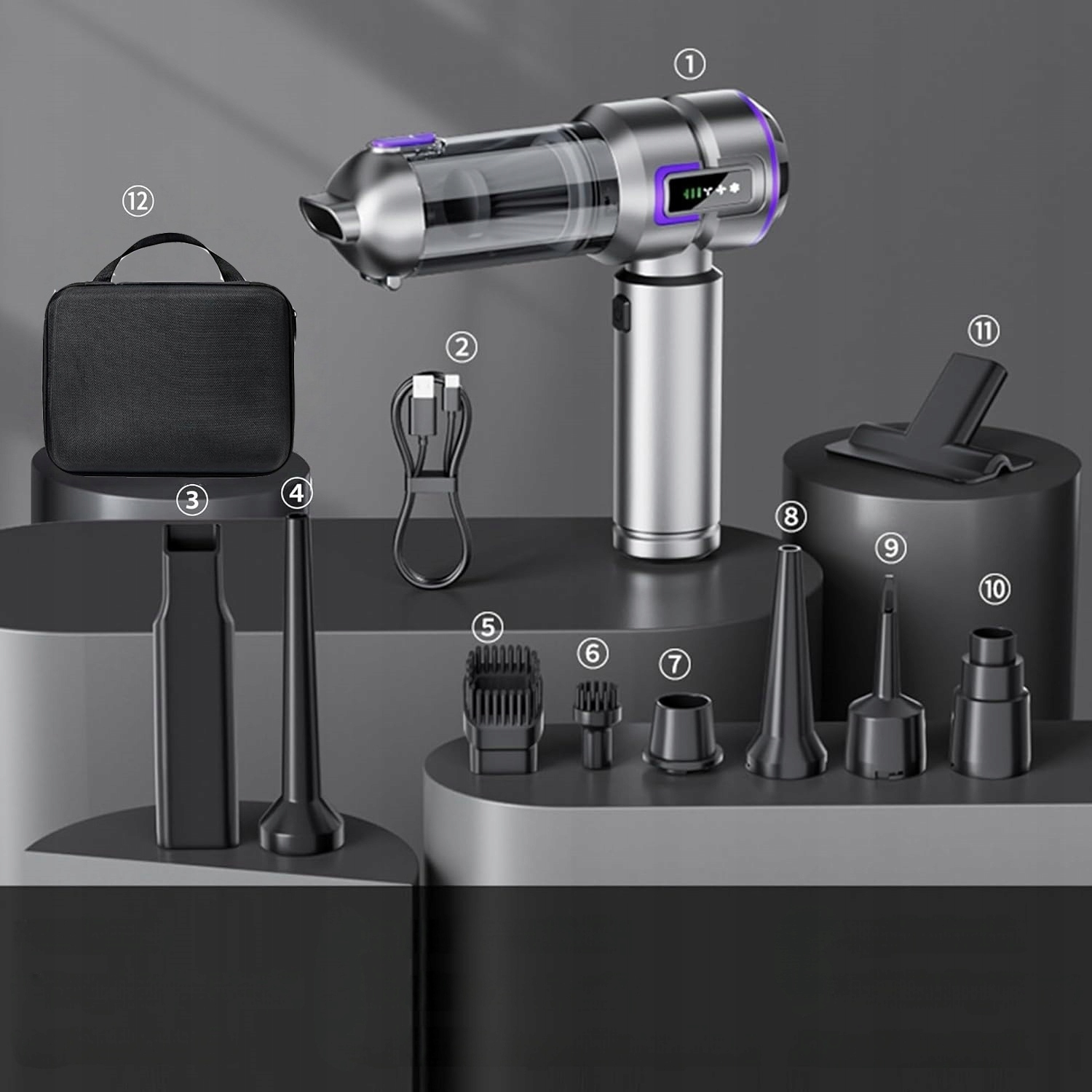 Портативность и простота в использовании. Этот портативный автомобильный пылесос легкий и помещается в любую сумку. Благодаря элегантному футляру на молнии для аксессуаров он идеально подходит для путешествий. Беспроводное управление и простое управление одной кнопкой превращают уборку в детскую игру — гибко и эффективно!