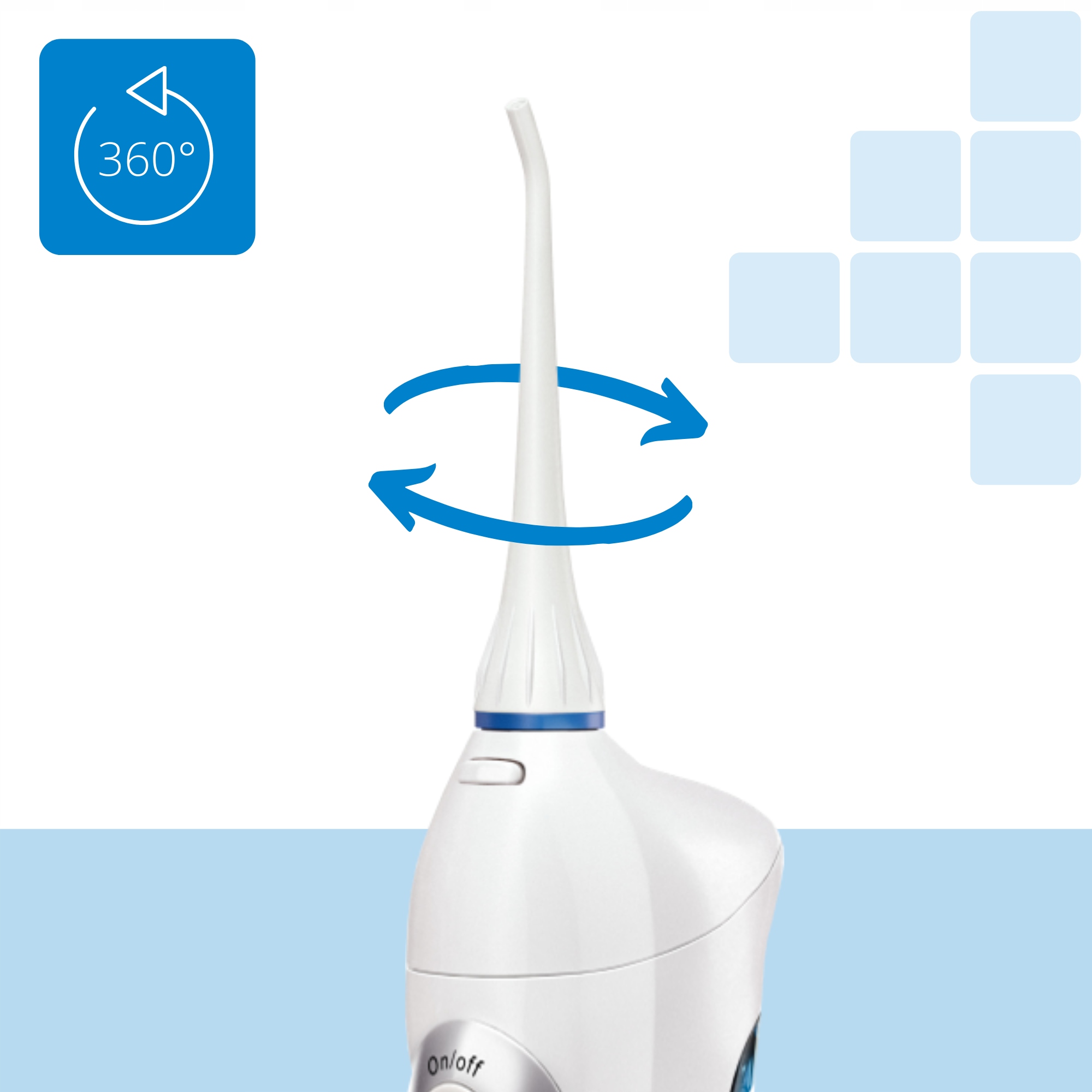 Беспроводной ирригатор — отличное решение для людей, которые часто путешествуют — он легкий и не занимают много места. Идеально подходит для маленьких ванных комнат, где место на столешнице и количество розеток ограничены.