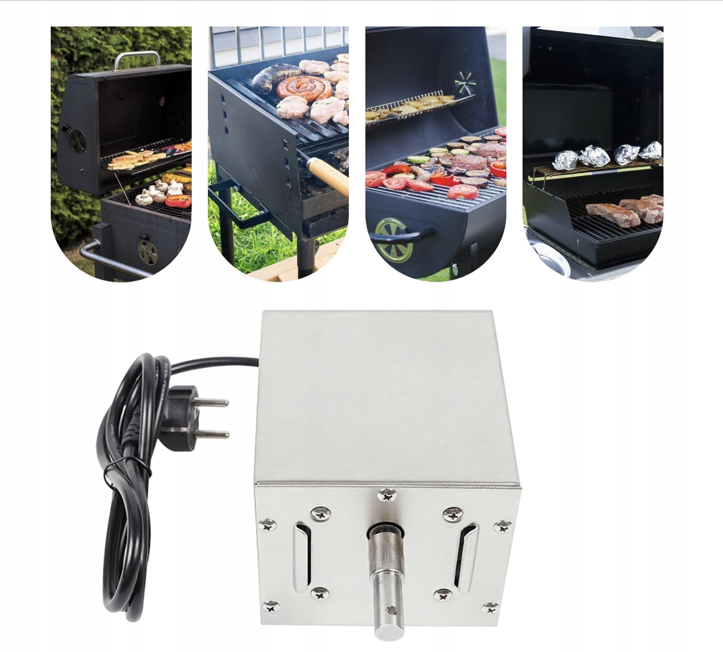Перейти на гриль на мастер -уровень! вам сыт по горло ручным поворотом, и вы хотите подготовить впечатляющее жаркое, которое порадует всех гостей? Наш мощный электрический двигатель для углового является надежным сердцем вашего гриля, которое позволит вам испечь всего поросят, баранины или нескольких цыплят одновременно!