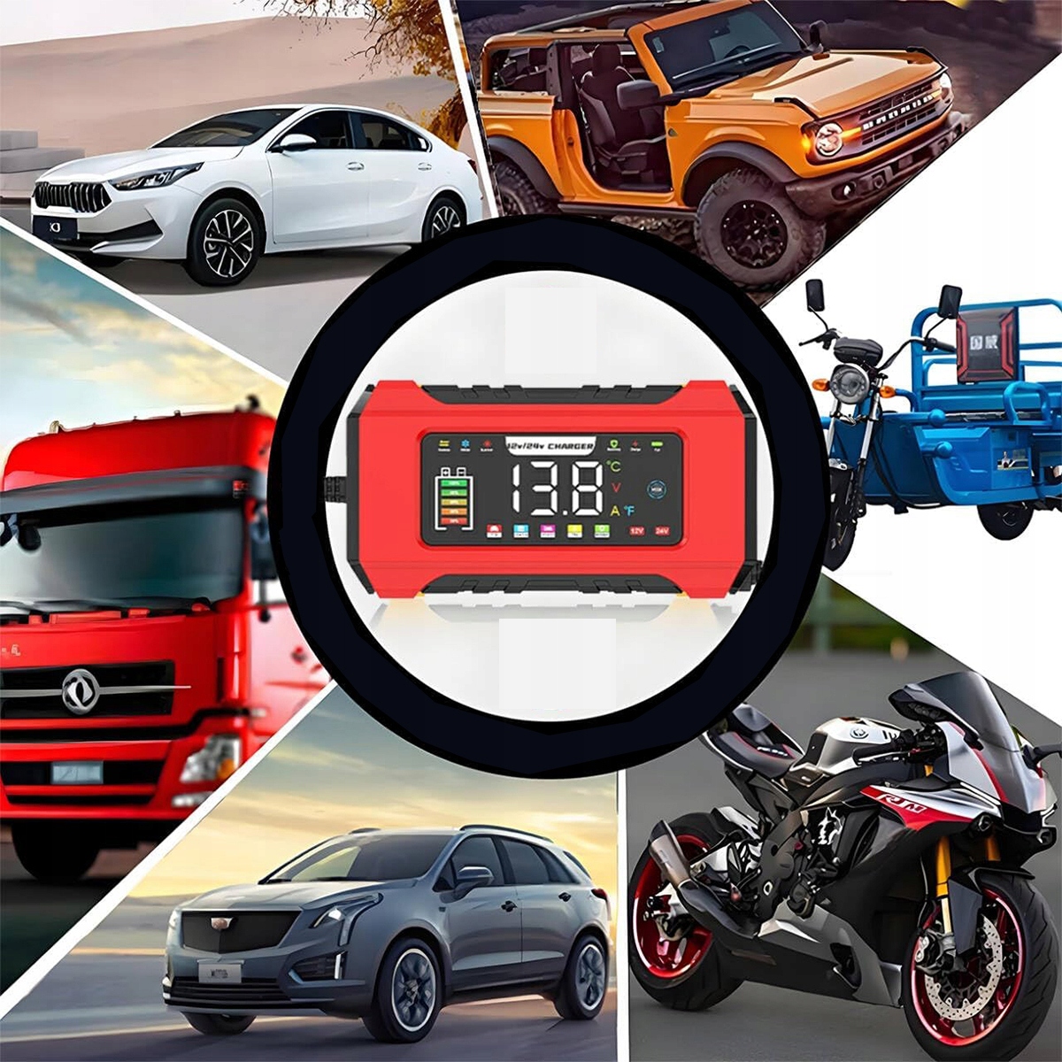 ✅с режимом ремонтно-технической зарядки, 9-ступенчатой зарядкой, ЖК-дисплеем для легковых, грузовых автомобилей, мотоциклов и лодок - совместимо со свинцово-кислотными, AGM, EFB, LiFePO4 аккумуляторами