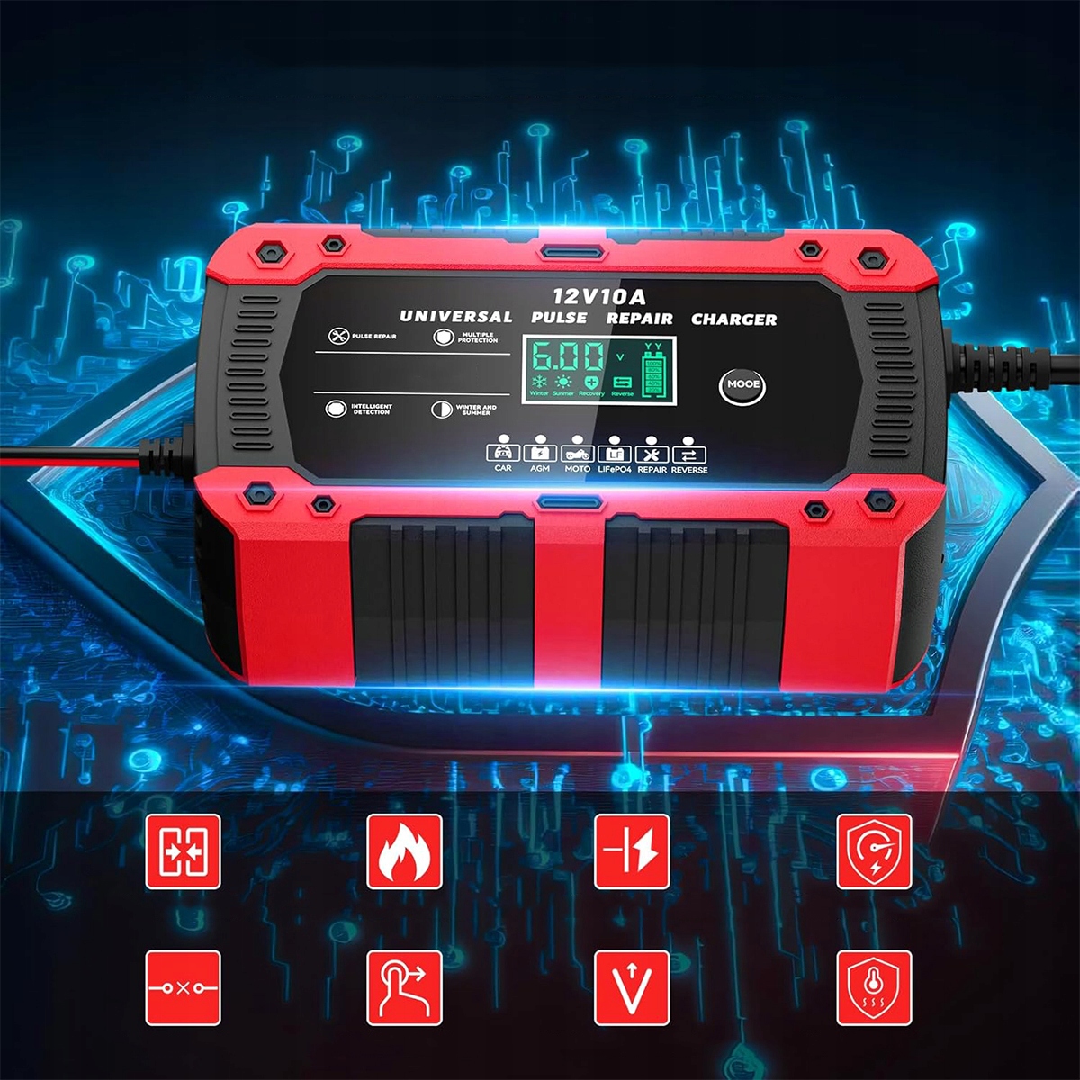 Car Charger 10a, интеллектуальное, полностью автоматическое автомобильное зарядное устройство 12 В, зарядное устройство с температурной компенсацией и ЖК -дисплей для автомобилей, мотоциклов, грузовиков (красный и черный) h1>