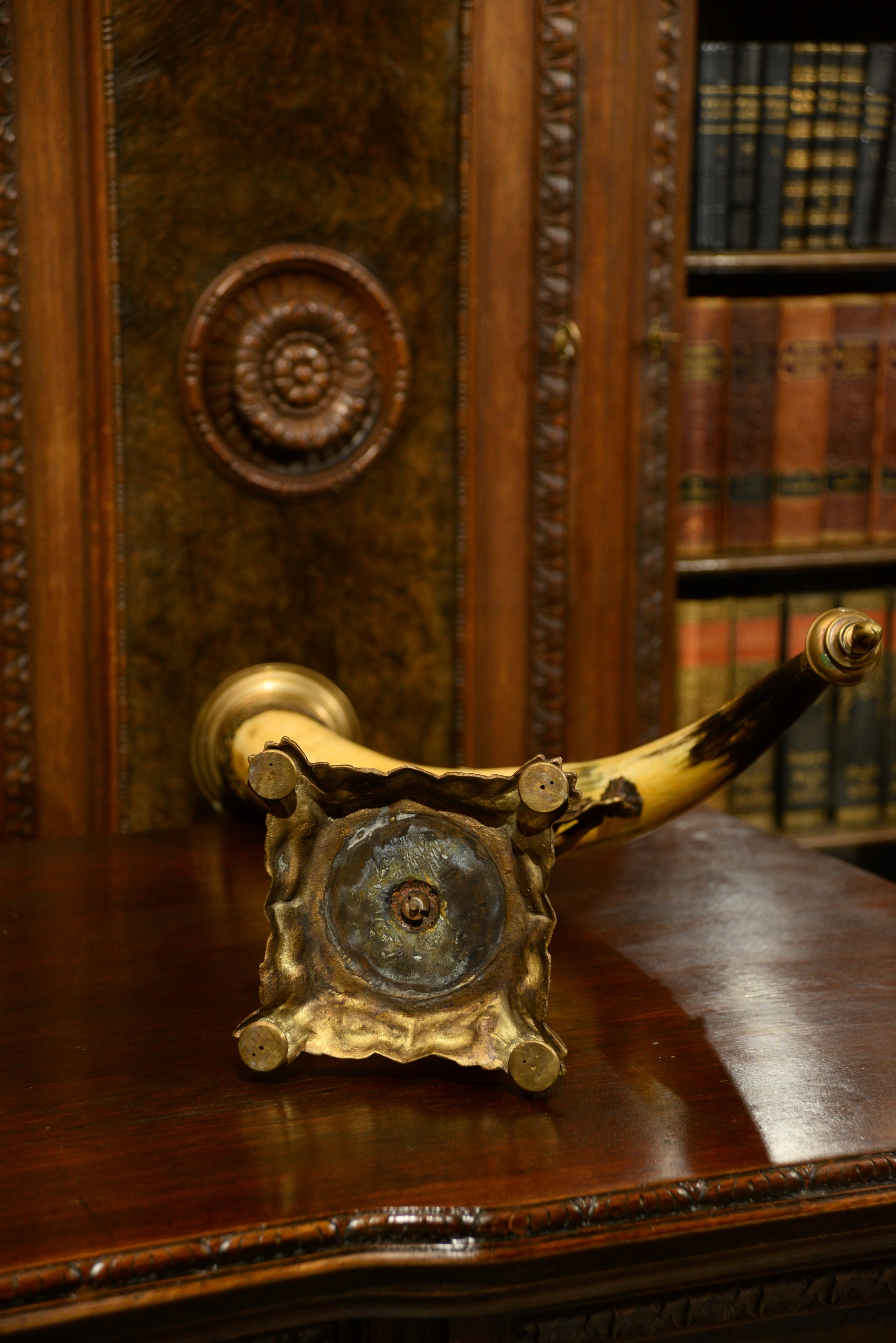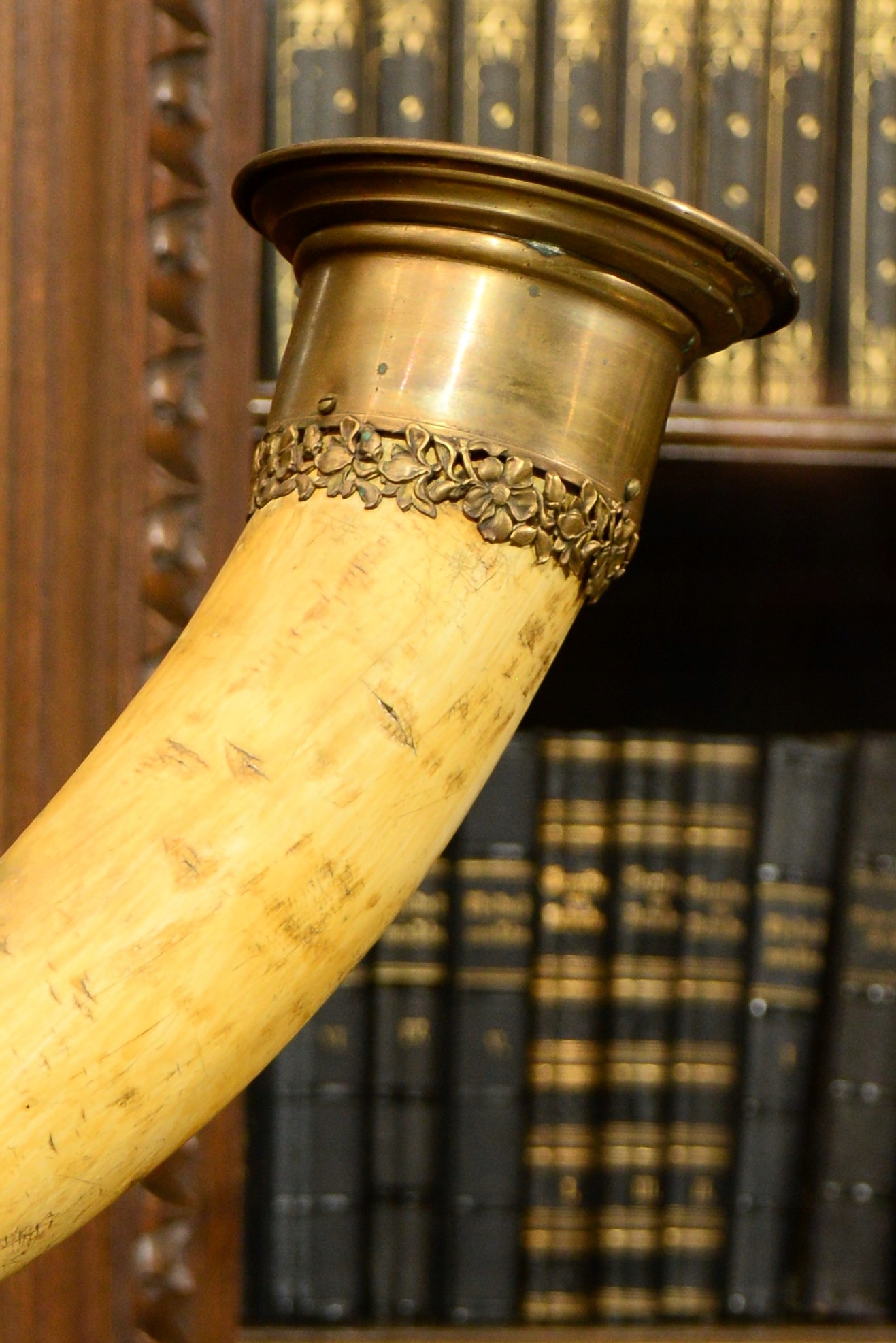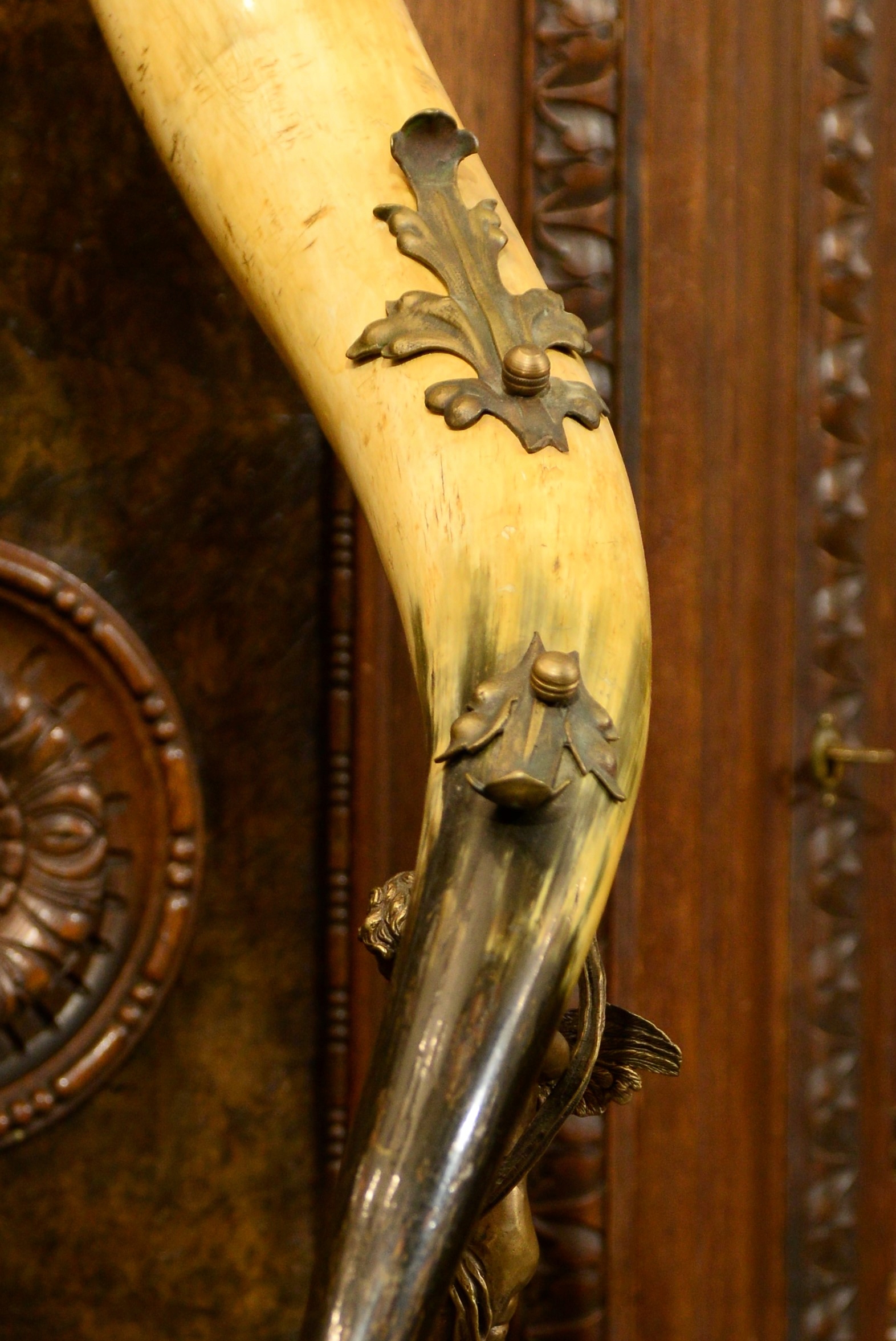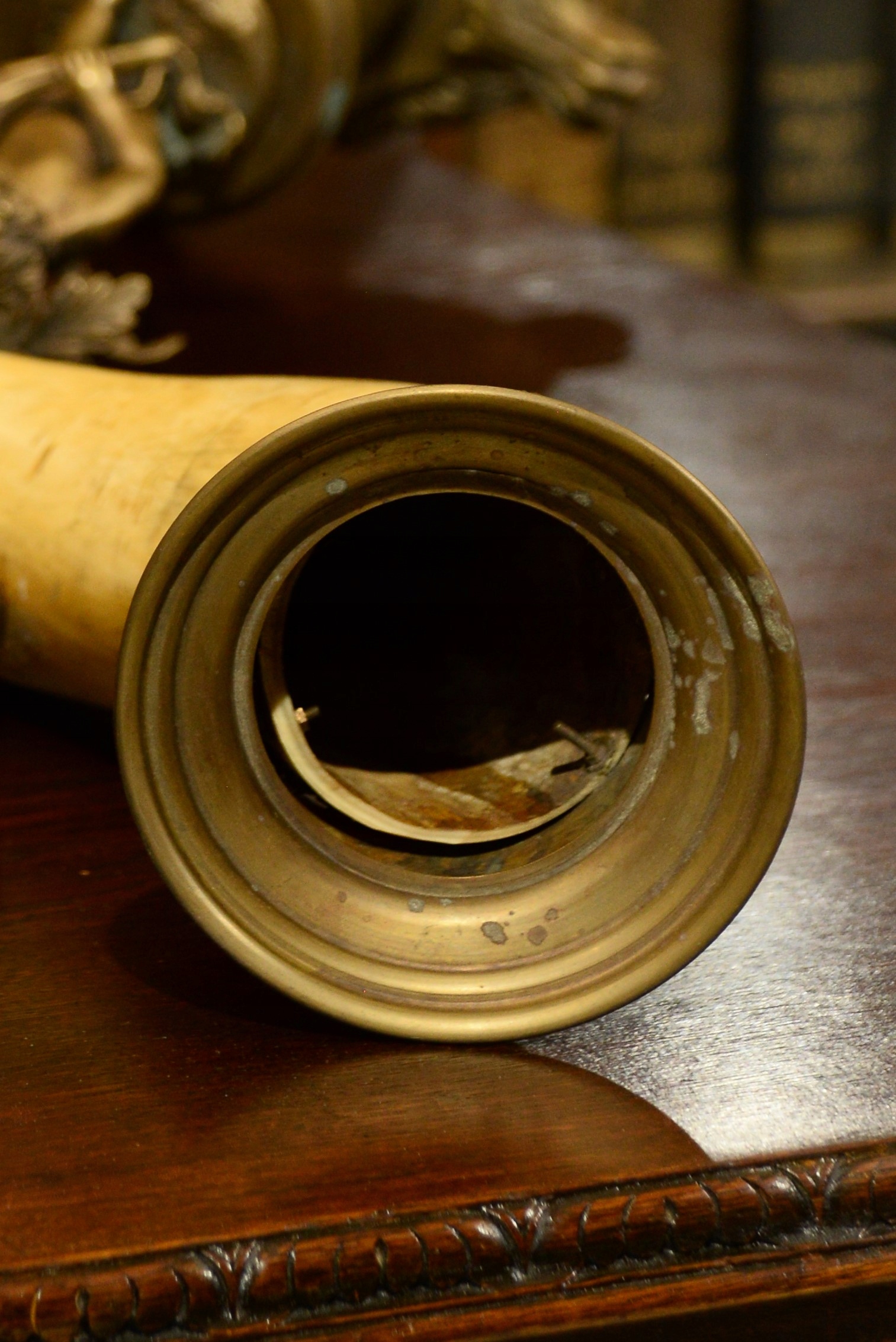 - мощный рог буйвола (?) в богатой оправе из латуни (или бронзы)