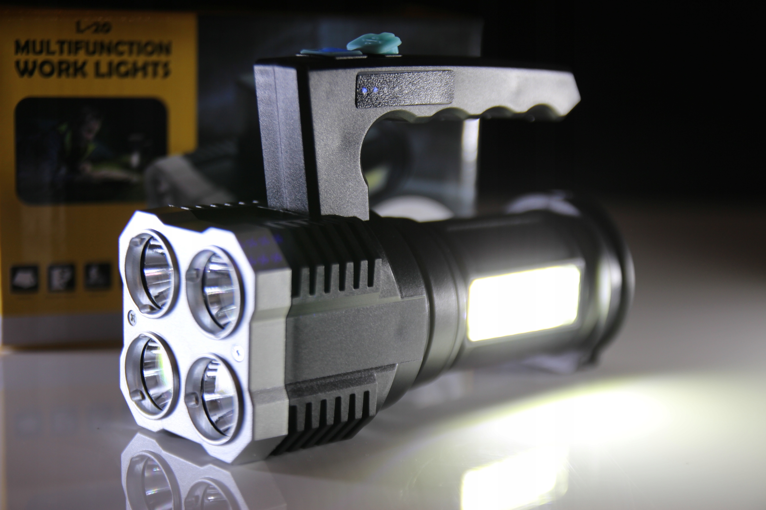 Компактный и легкий прожектор с многофункциональным фонарем. дизайн