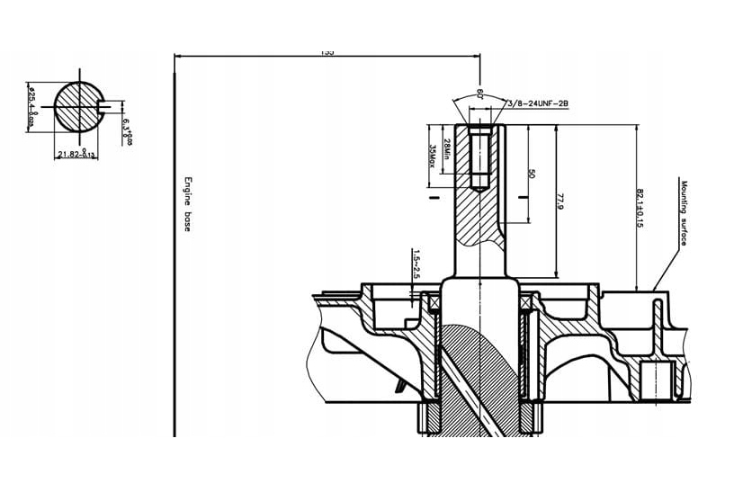 - Тип вала: цилиндрический, шпоночный; диаметр: 25,4 мм; длина: 80 мм, монтажная длина коробки отбора мощности: 80 мм.