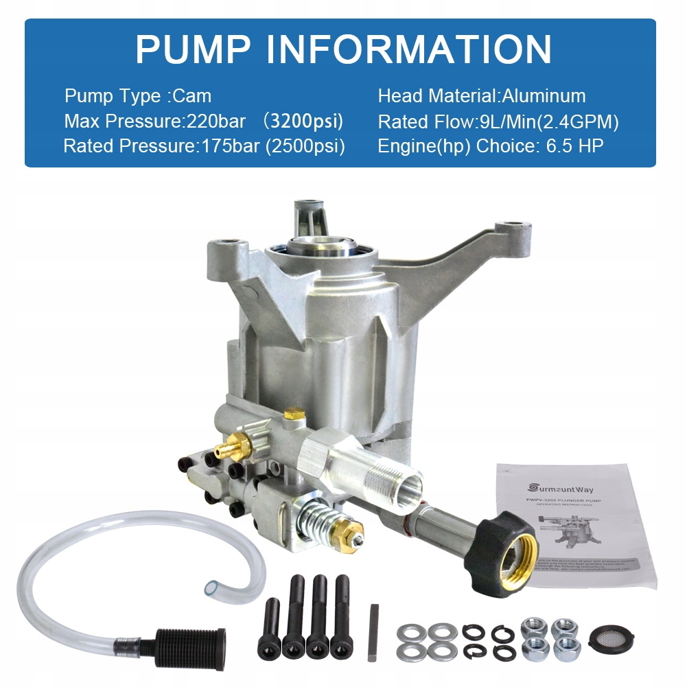>【Насос для мойки высокого давления】Вертикальный осевой насос с прямым приводом подходит для большинства моечных машин с вертикальным валом: он может работать в широком диапазоне от 2900 до 3200 фунтов на квадратный дюйм, наилучшая производительность при 3000 фунтов на квадратный дюйм и 2,4 галлона в минуту.