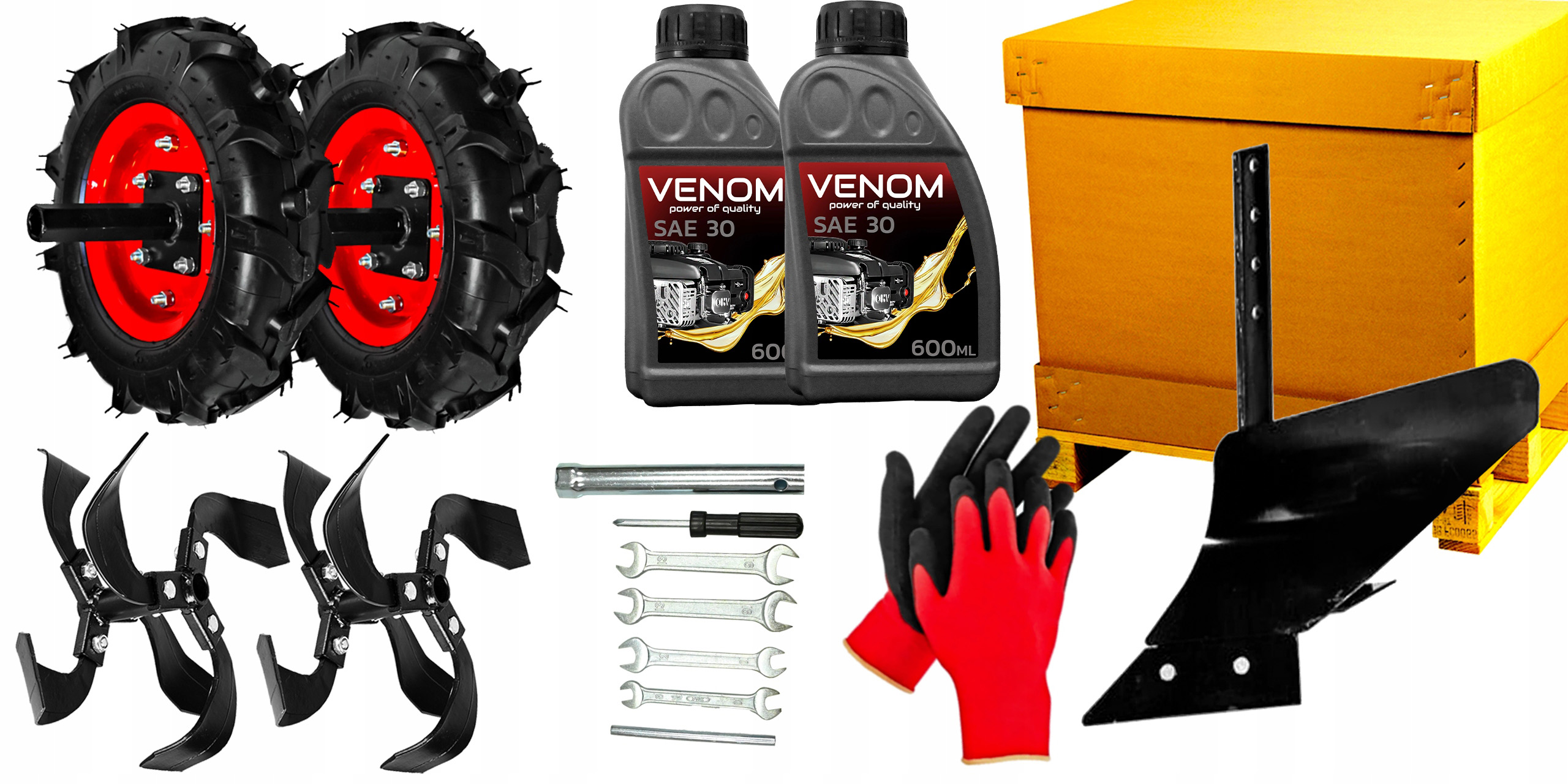 ✔️ Наша последняя модель мотоблока оснащена огромными колесами, благодаря которым она может стать многофункциональным устройством. На этом аукционе представлен очень богатый комплект, в который входят все необходимые аксессуары для данной модели.