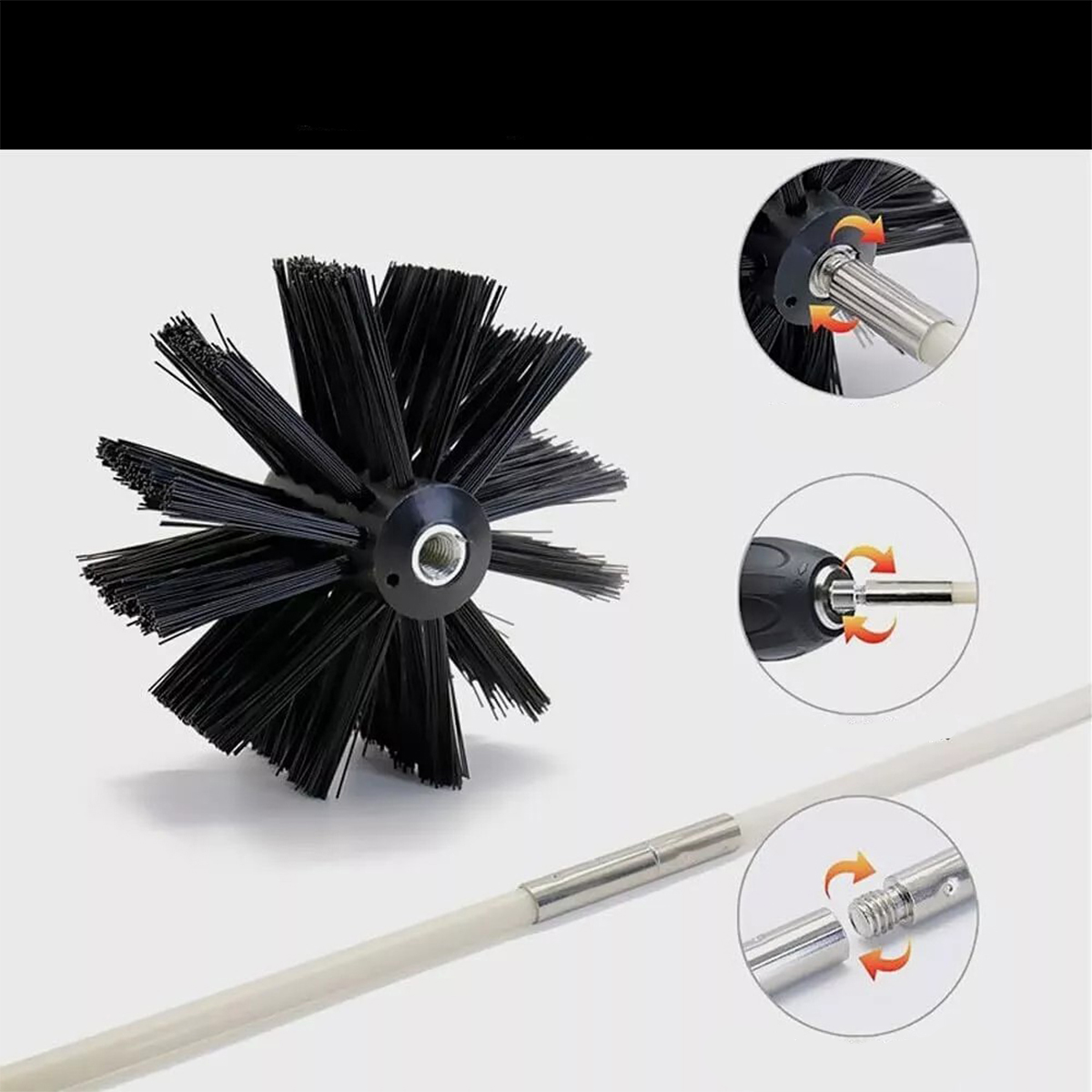 ❗ Диаметр головки щетки составляет 6 дюймов. Перед покупкой проверьте диаметр трубы дымохода, чтобы не повлиять на эффект очистки.