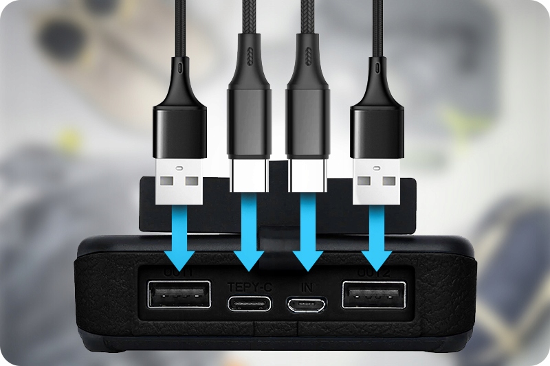 Вы можете заряжать аккумулятор через вход microUSB, а также через USB Type C. Если у вас телефон с таким входом, вам больше не придется носить с собой два кабеля. Вы можете зарядить powerbank с помощью кабеля от телефона!