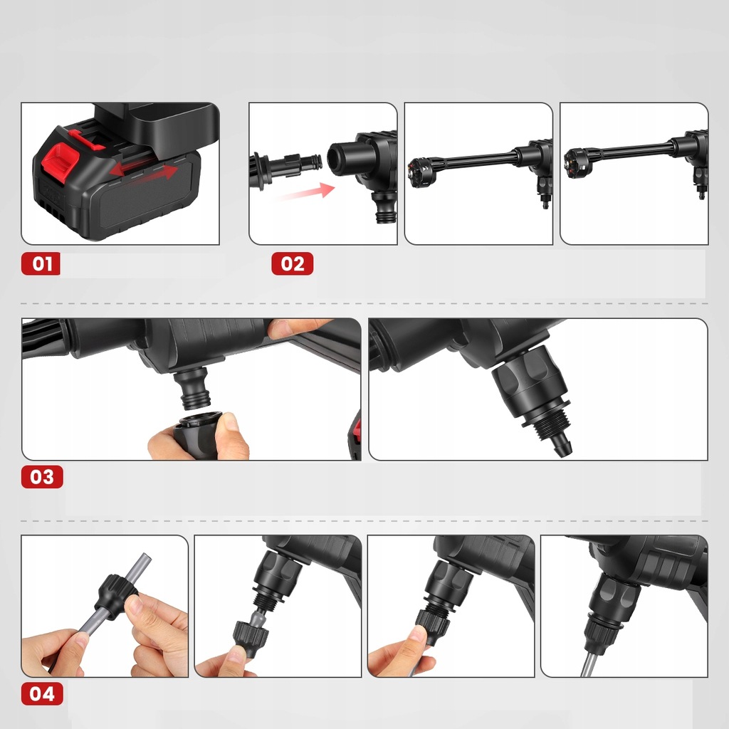 - Наша беспроводная автомойка, портативный водяной насос высокого давления с литиевой батареей и водяным пистолетом — это мощный инструмент для мойки автомобилей с несколько насадок, которые можно адаптировать для различных нужд, включая мойку автомобилей, работу в саду, полив и уборку дома.