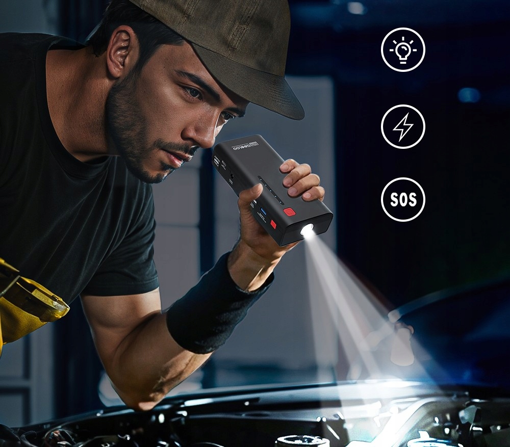 Пусковое устройство предназначено для запуска многих типов транспортных средств, в том числе: легковых автомобилей, внедорожников, фургонов, лодок, мотоциклов и т. д. Устройство не предназначено для грузовых автомобилей. и электрическое.