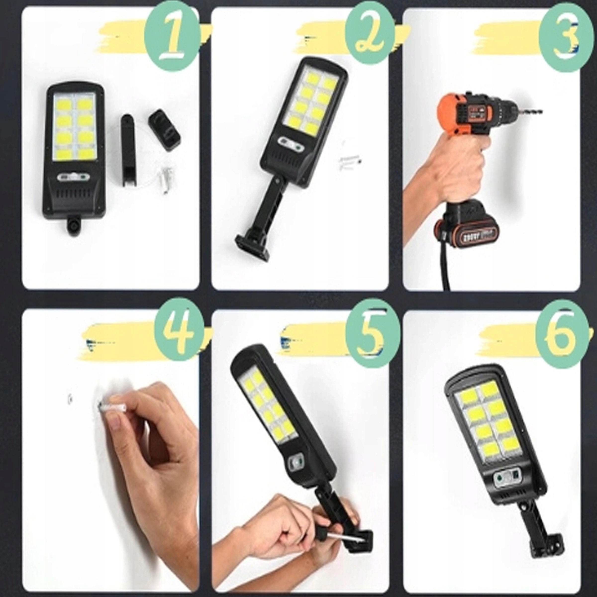 ✔️ Простая установка — никаких кабелей:Установка лампы быстрая и простая — просто прикрепите ее к стене, столбу или другой поверхности с помощью прилагаемого крепежа.