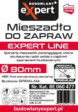 МОЩНЫЙ СПИРАЛЬНЫЙ миксер для кладочных растворов, ВЫТЯГИВАЮЩИЙ ВВЕРХ Тип HEX 80 мм