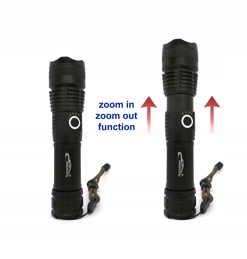 Функция Zoom – плавная регулировка изменения фокусного расстояния света. Используется фокусирующая линза, позволяющая плавно регулировать от узкого мощного луча света с дальностью действия – 600 м до широкого поля, освещающего большую рабочую зону. Вы легко сможете осветить пространство площадью 150 м2 или сфокусироваться на предметах на расстоянии до 600 м.