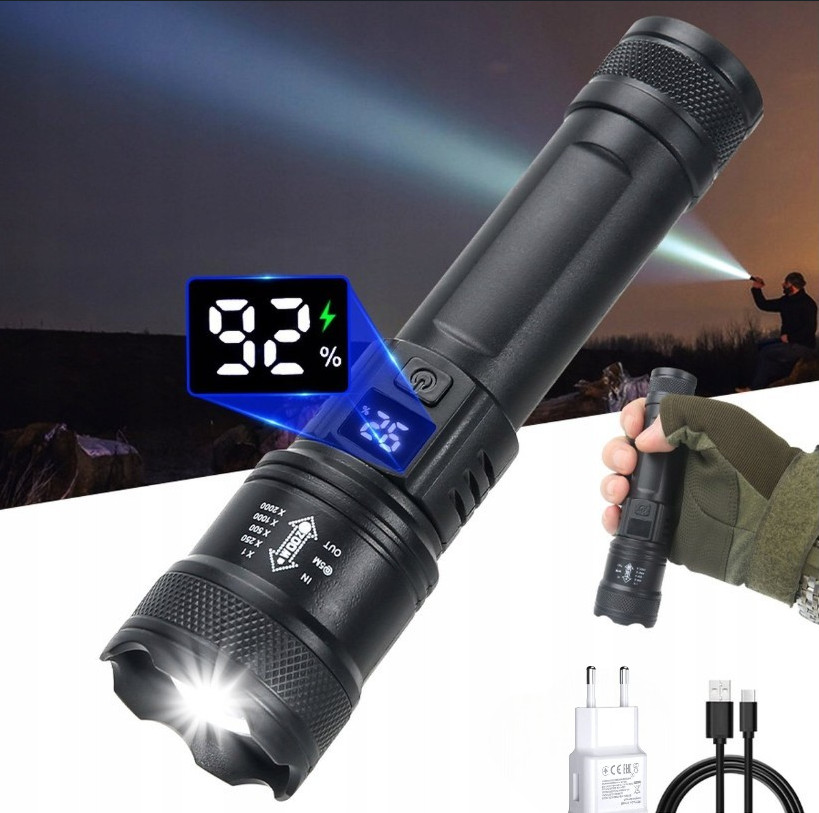 МОЩНАЯ СВЕТОДИОДНАЯ ТАКТИЧЕСКАЯ АККУМУЛЯТОРНАЯ ЛАМПА ZOOM SURVIVAL В ПОДАРОК USB C