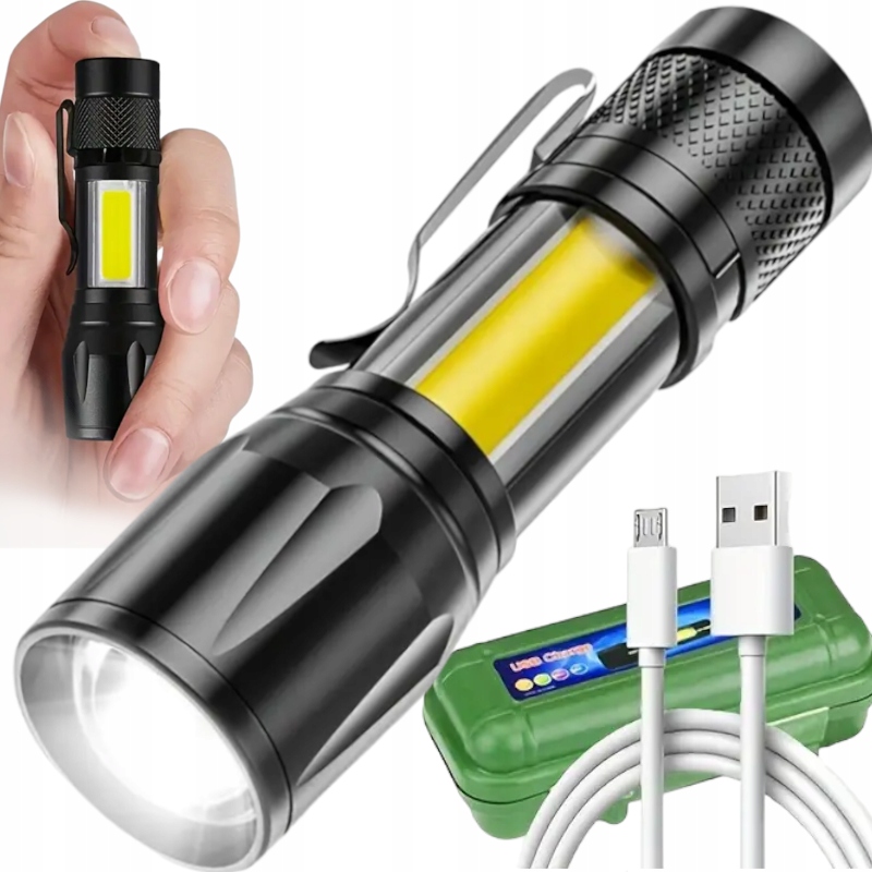МОЩНЫЙ ТАКТИЧЕСКИЙ КАРМАННЫЙ ФОНАРЬ XPE COB LED T6 СТАЛЬНОЙ ВОЕННЫЙ ЗУМ