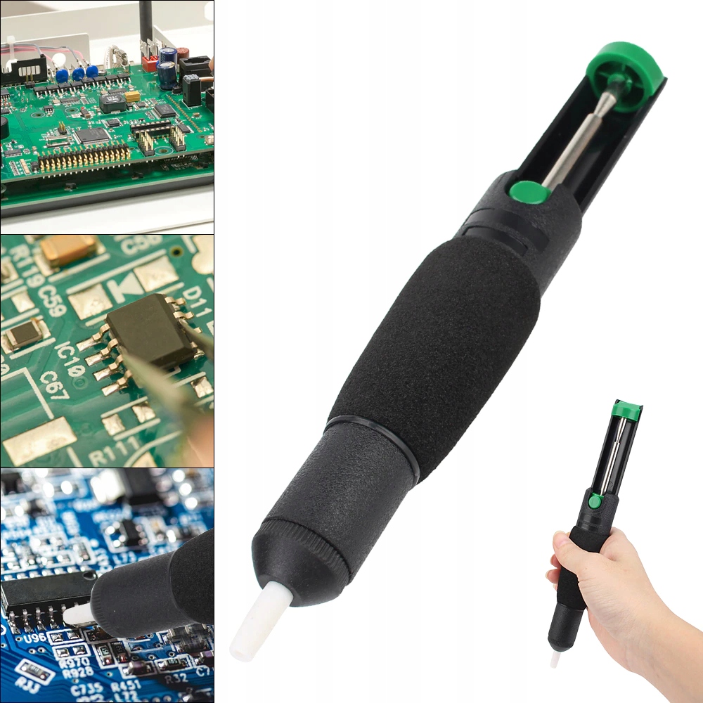 Изделие является идеальным инструментом для отсасывания излишков олова. . Незаменим для всех видов пайки. Поршень с двойным уплотнением, обеспечивающим высокую силу всасывания. Поршневая пружина изготовлена из нержавеющей стали. Легкосъемный и сменный всасывающий наконечник. Эргономичный дизайн, обеспечивающий комфортную работу. Нескользящая ручка из мягкого пенопласта. Компактный и легкий дизайн. Материал: ABS