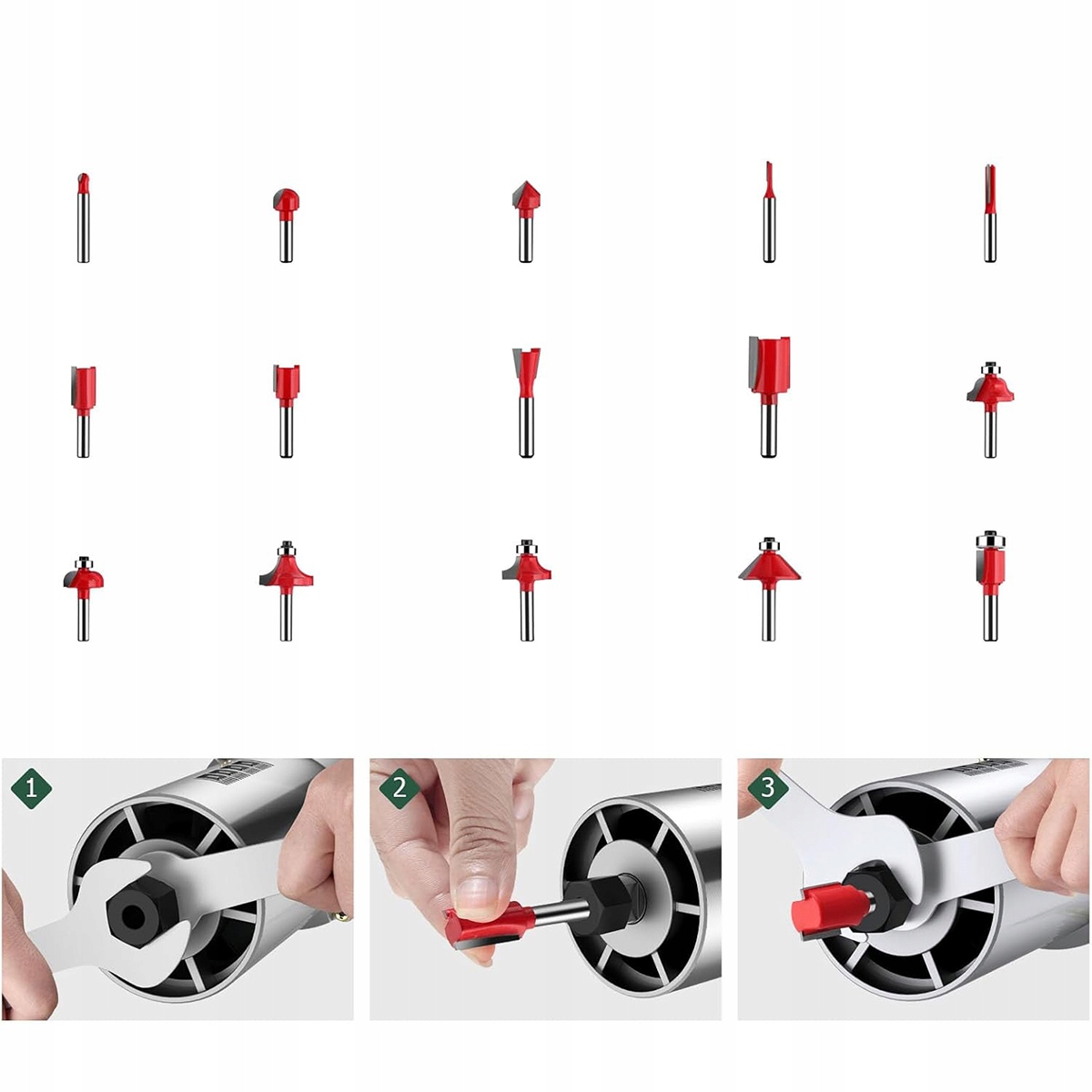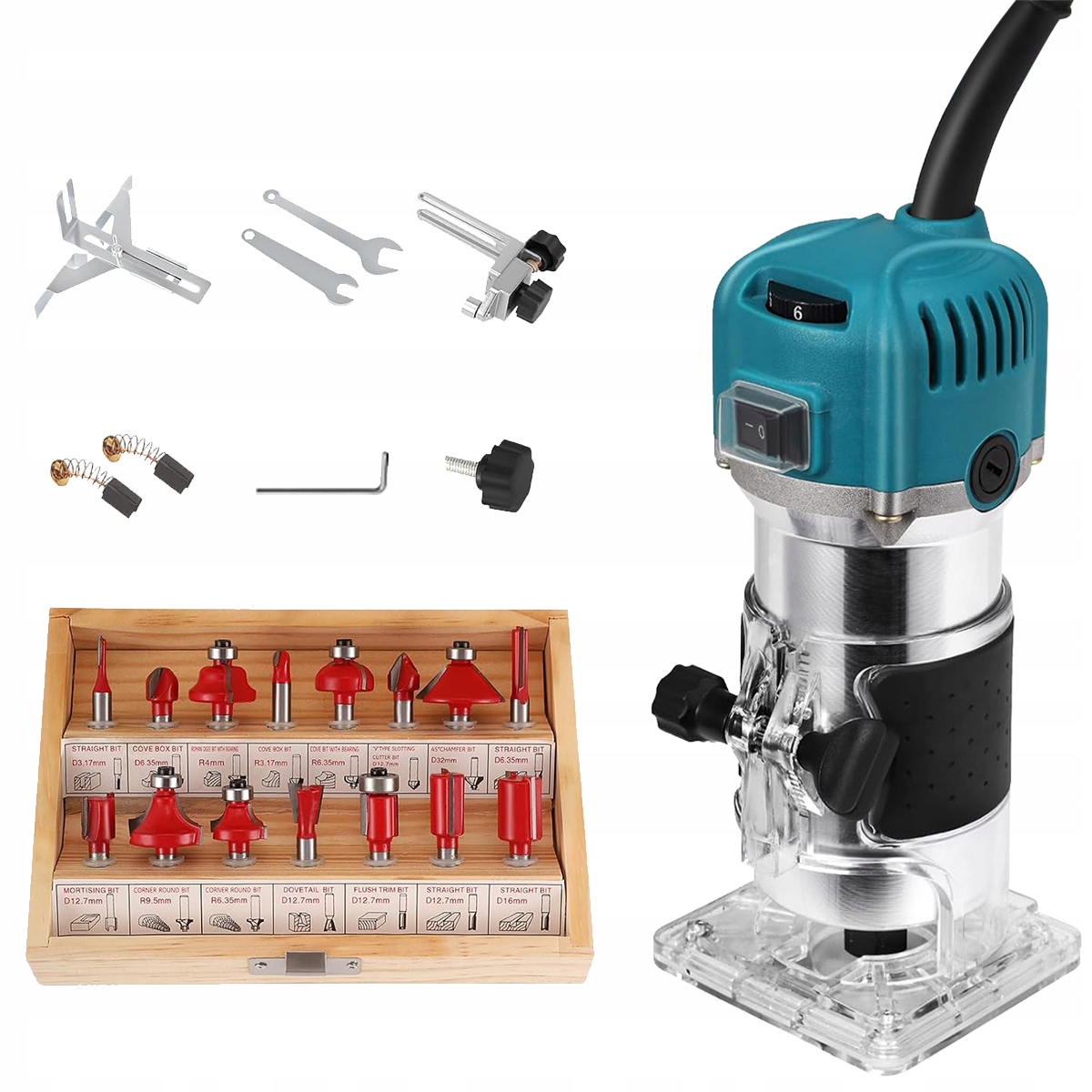 ⚙️Электрический фрезер 800 Вт, диаметр 6,35 мм, 30 000 об/мин. Фрезер для одной руки. Фрезер для кромок. Переменная скорость, в комплект входят: Набор из 15 фрез 1/4 дюйма, идеально подходящих для работы по дереву🔩